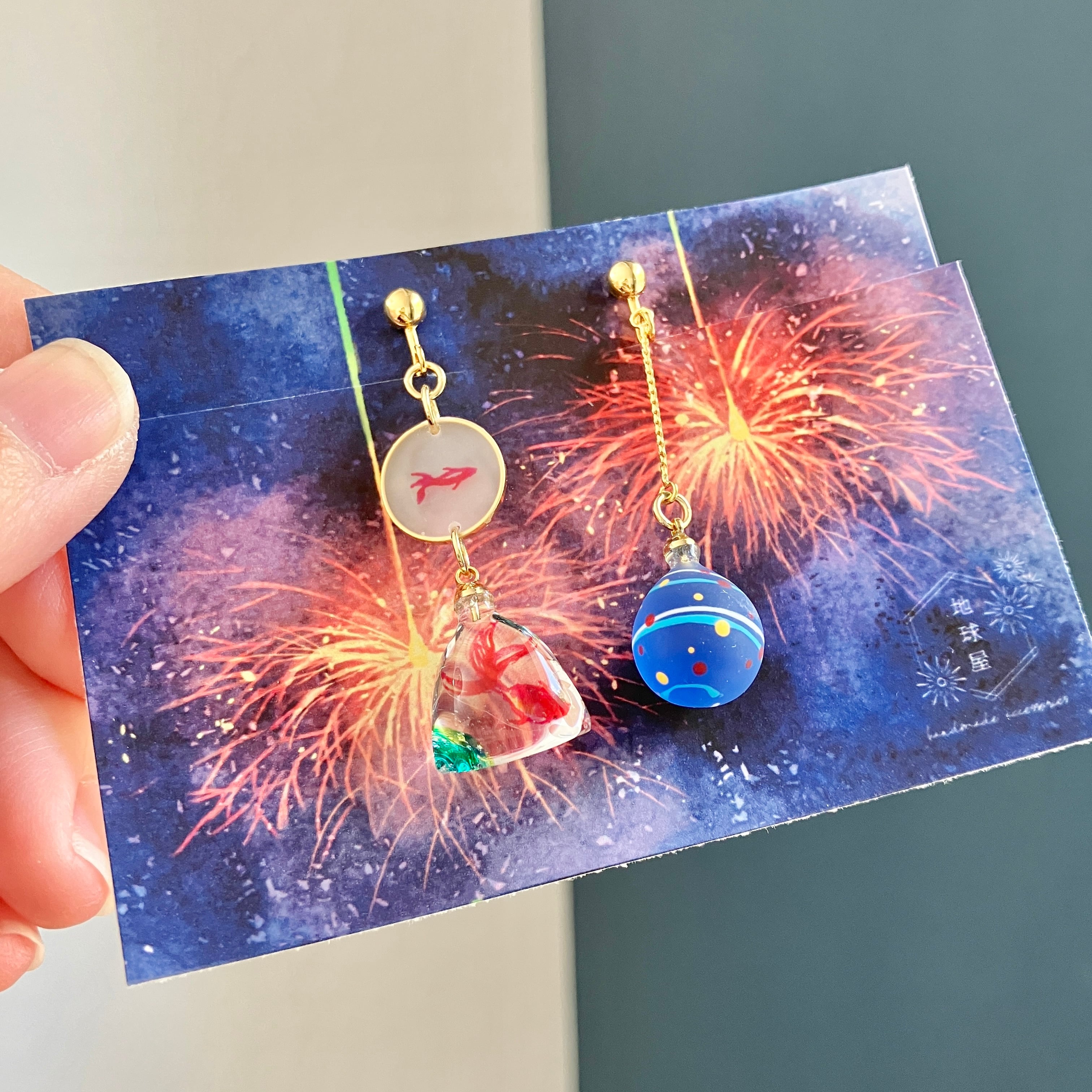 手描き模様の水風船とポイ付きの金魚すくいモチーフに涼しげな世界を閉じ込めました(^^)