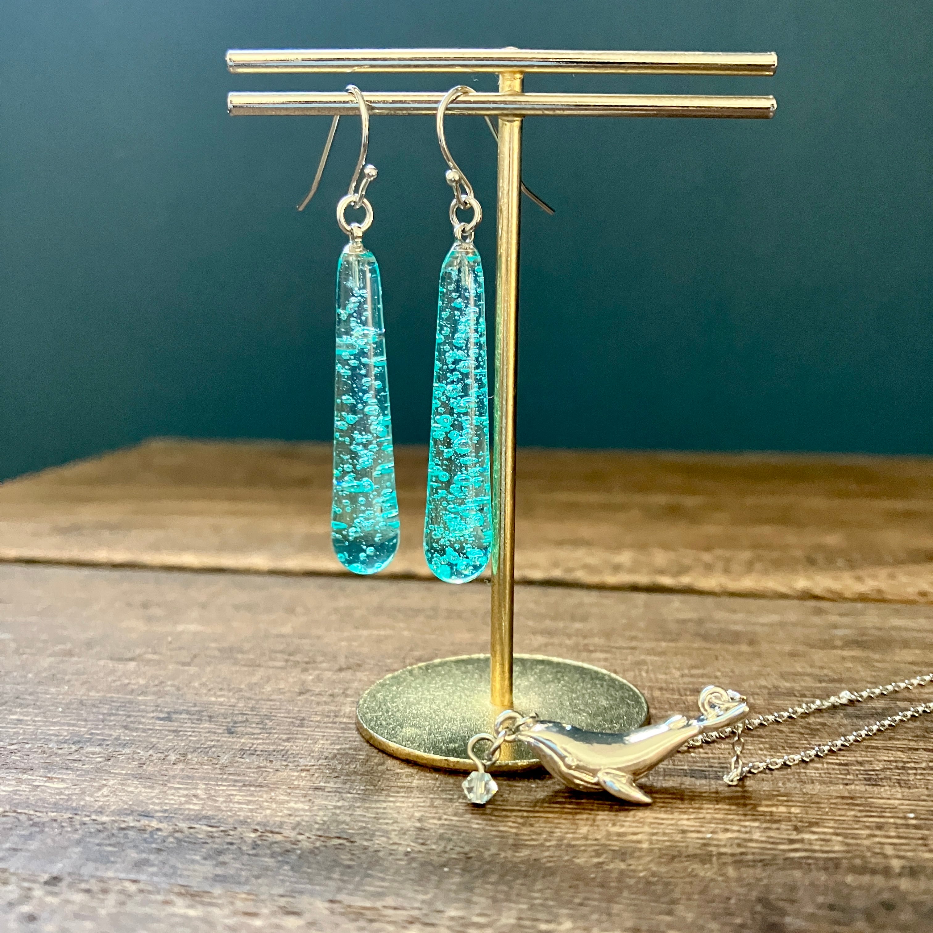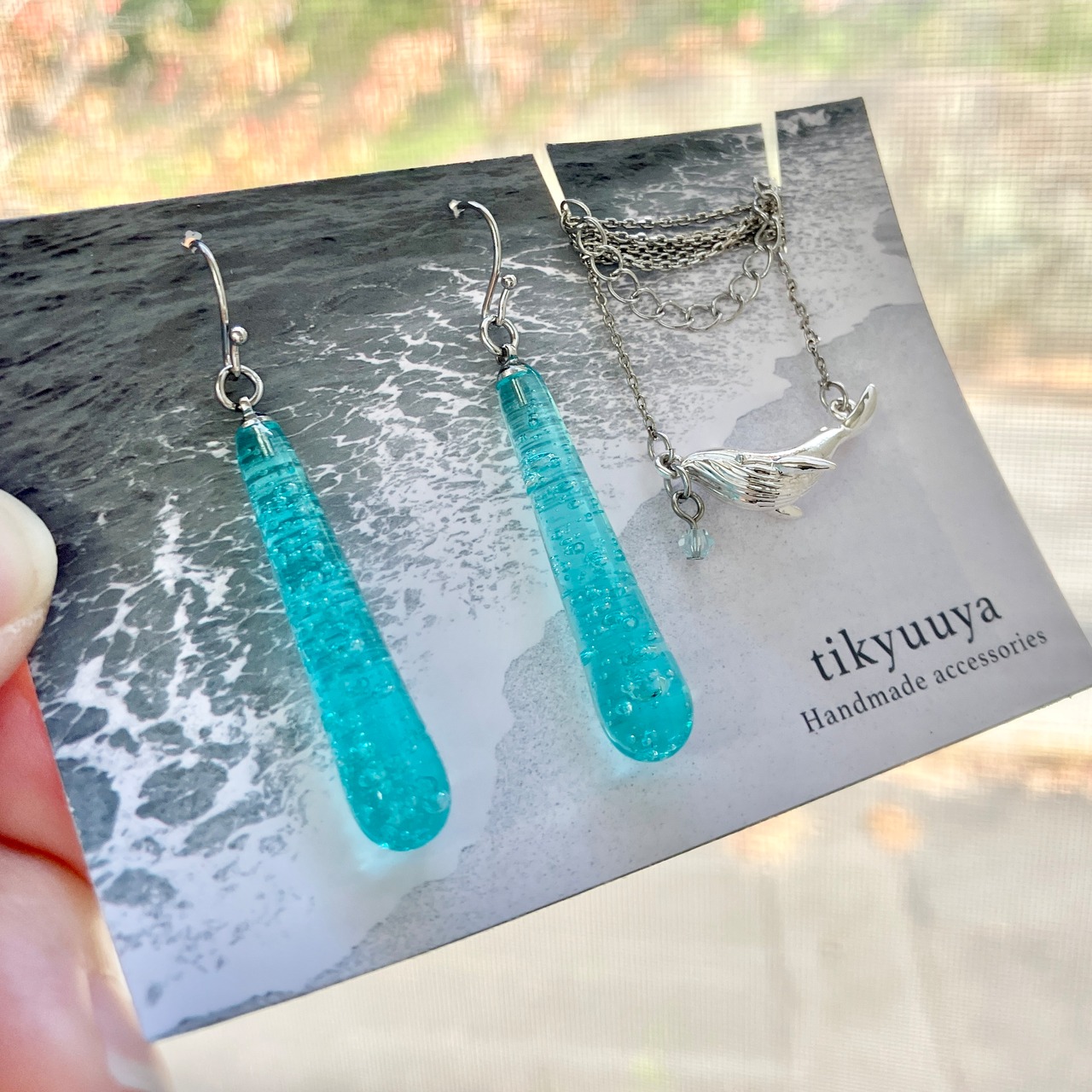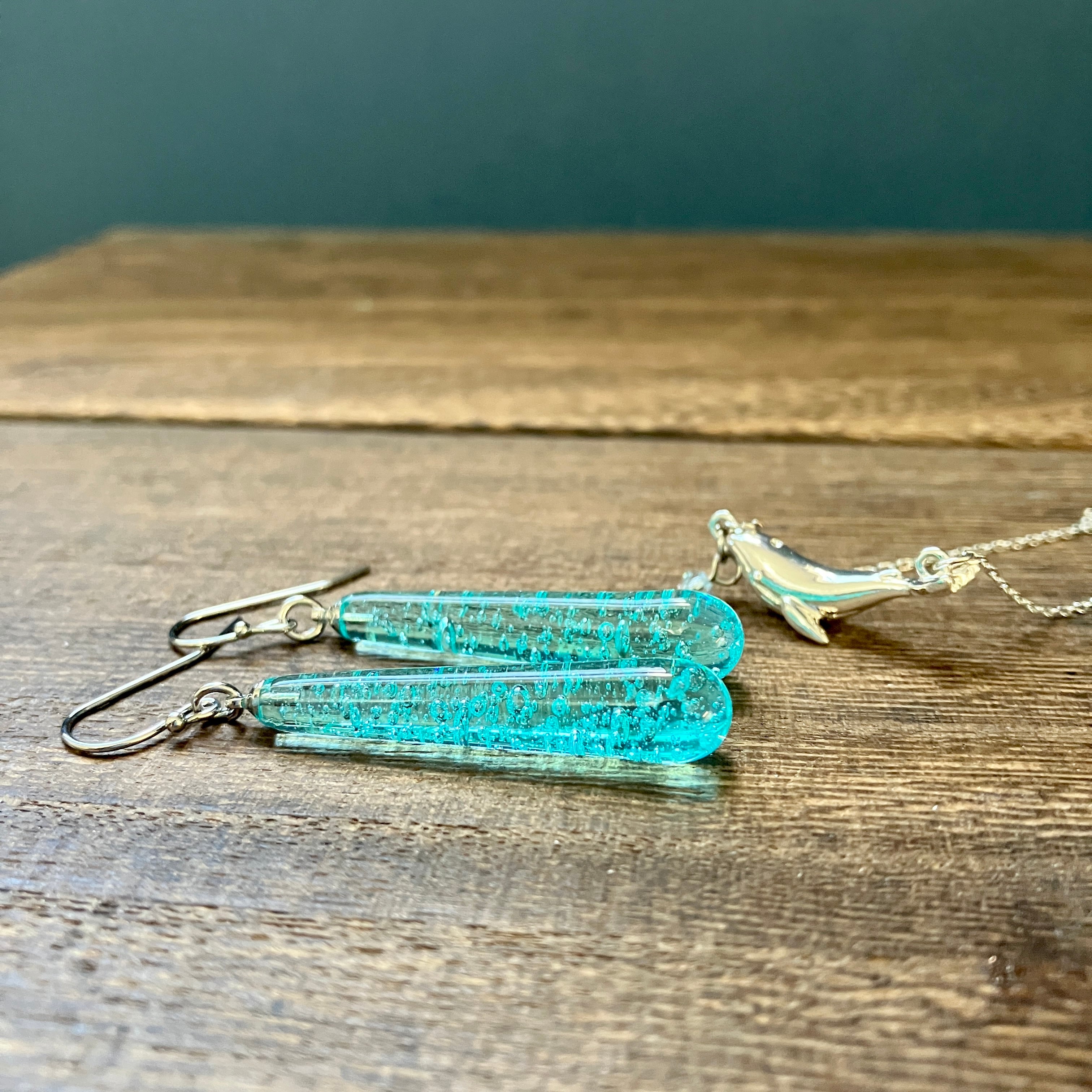 海のかけらドロップピアス&クジラチャームのネックレス
