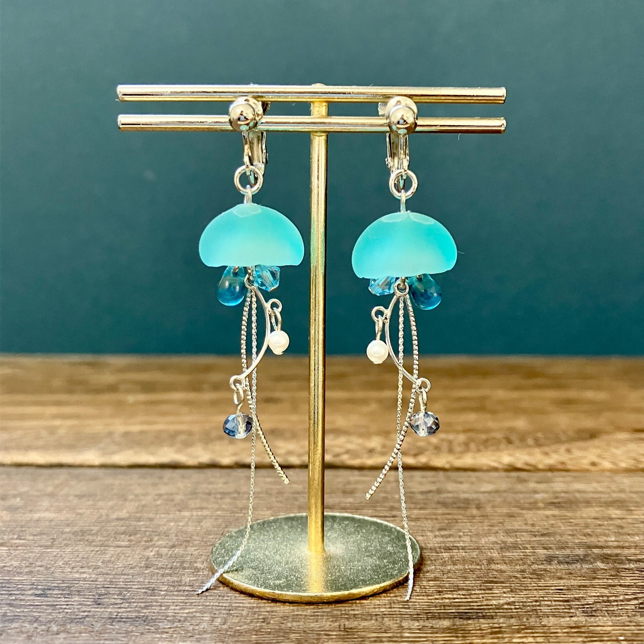 海月をモチーフにしたゆらゆら揺れる耳飾り。