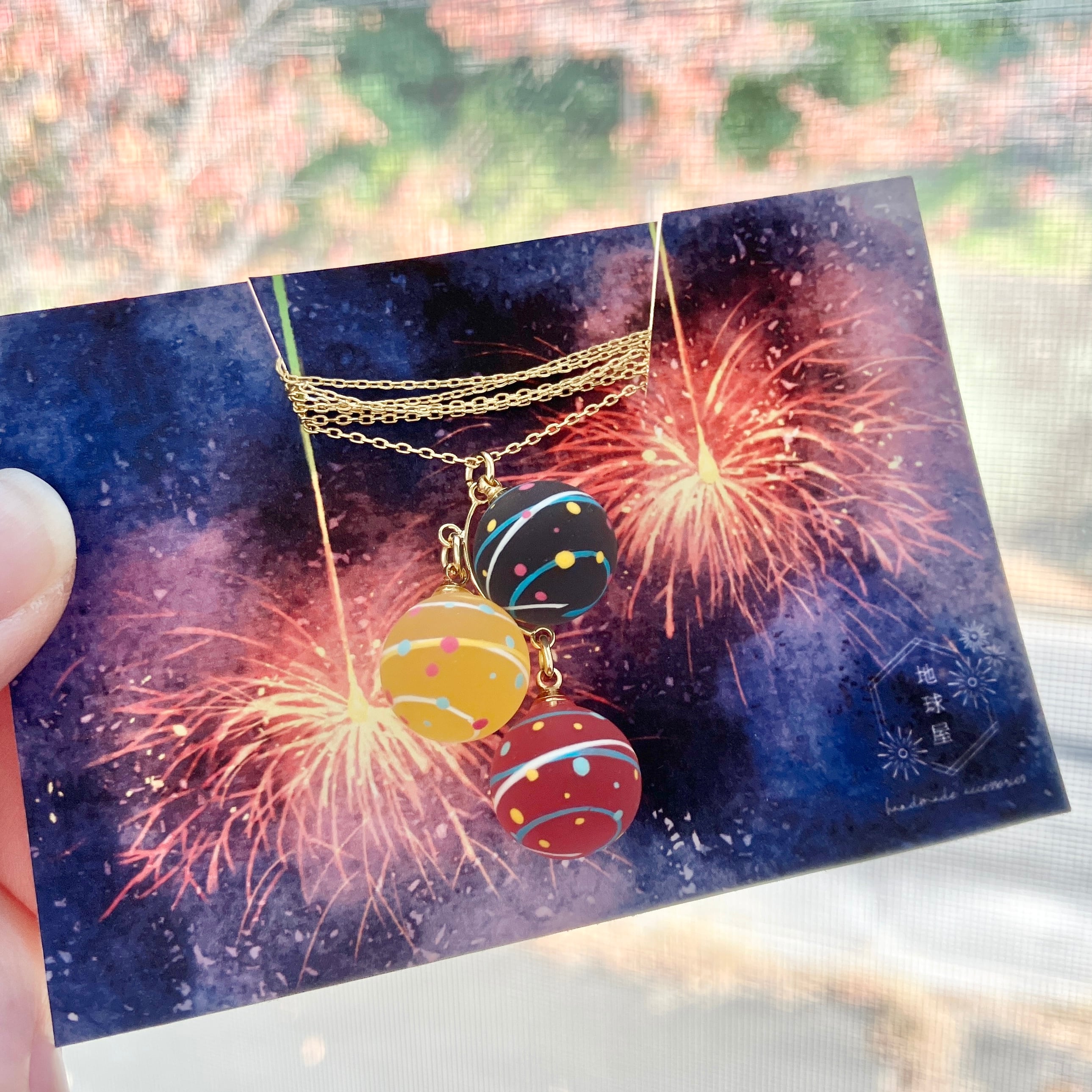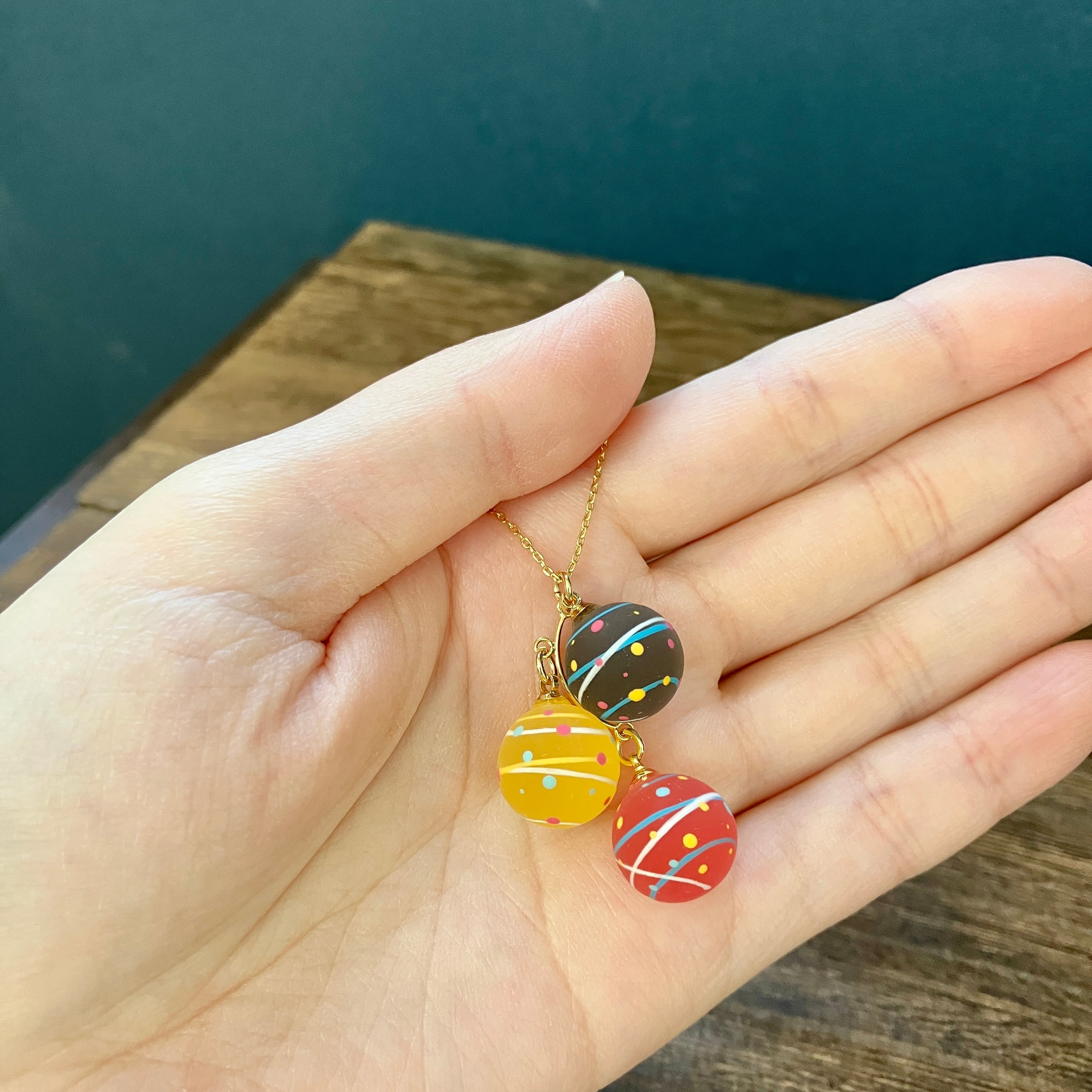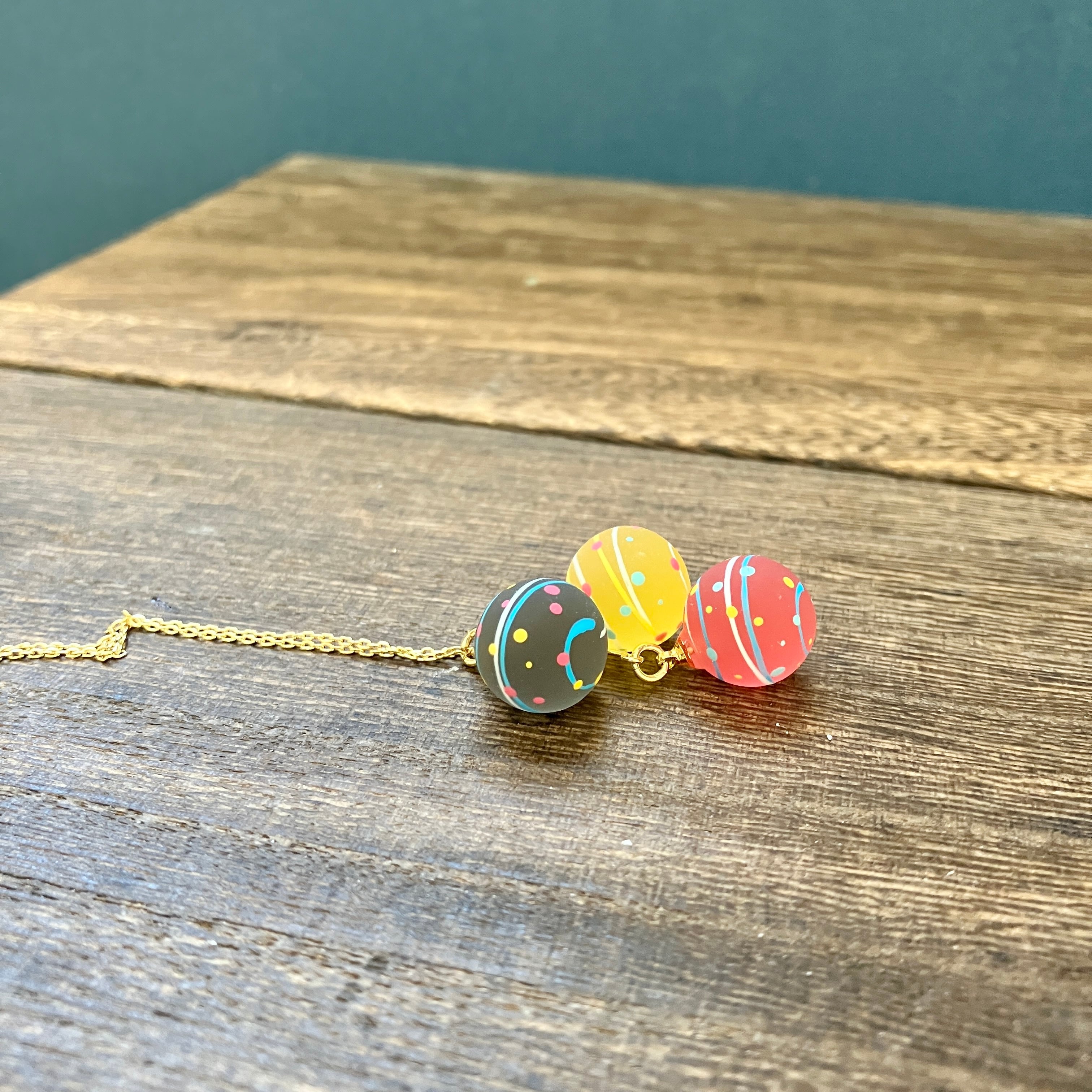 小さな水風船を3色組み合わせてネックレスに仕立てました。