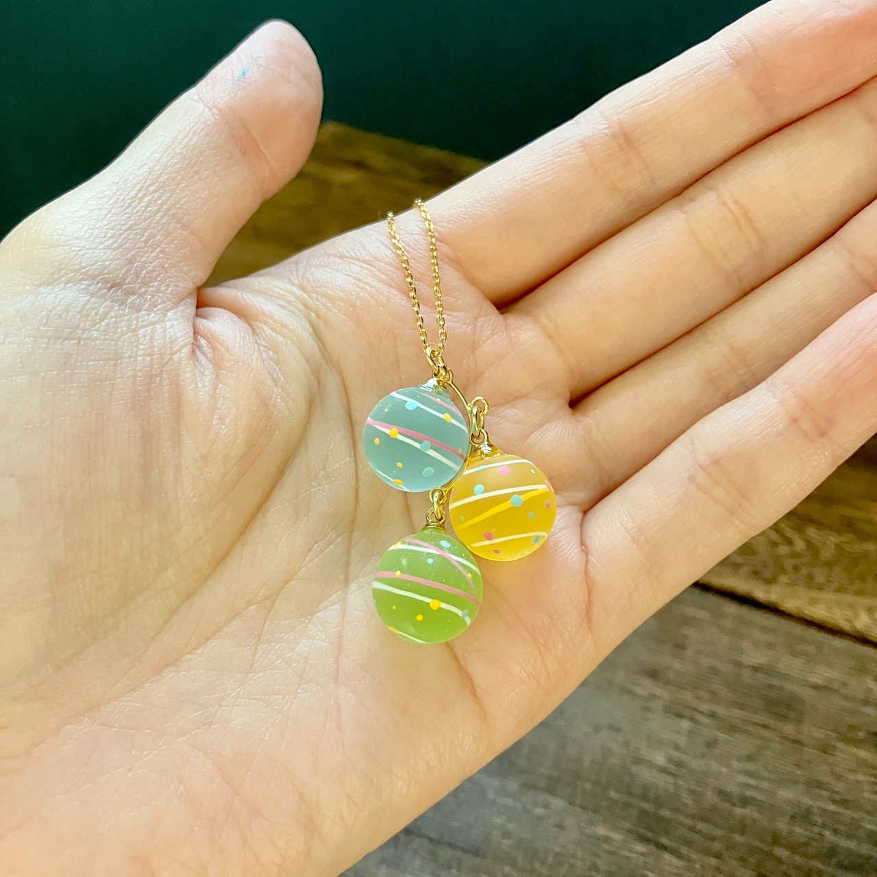 小さな水風船を3色組み合わせてネックレスに仕立てました。