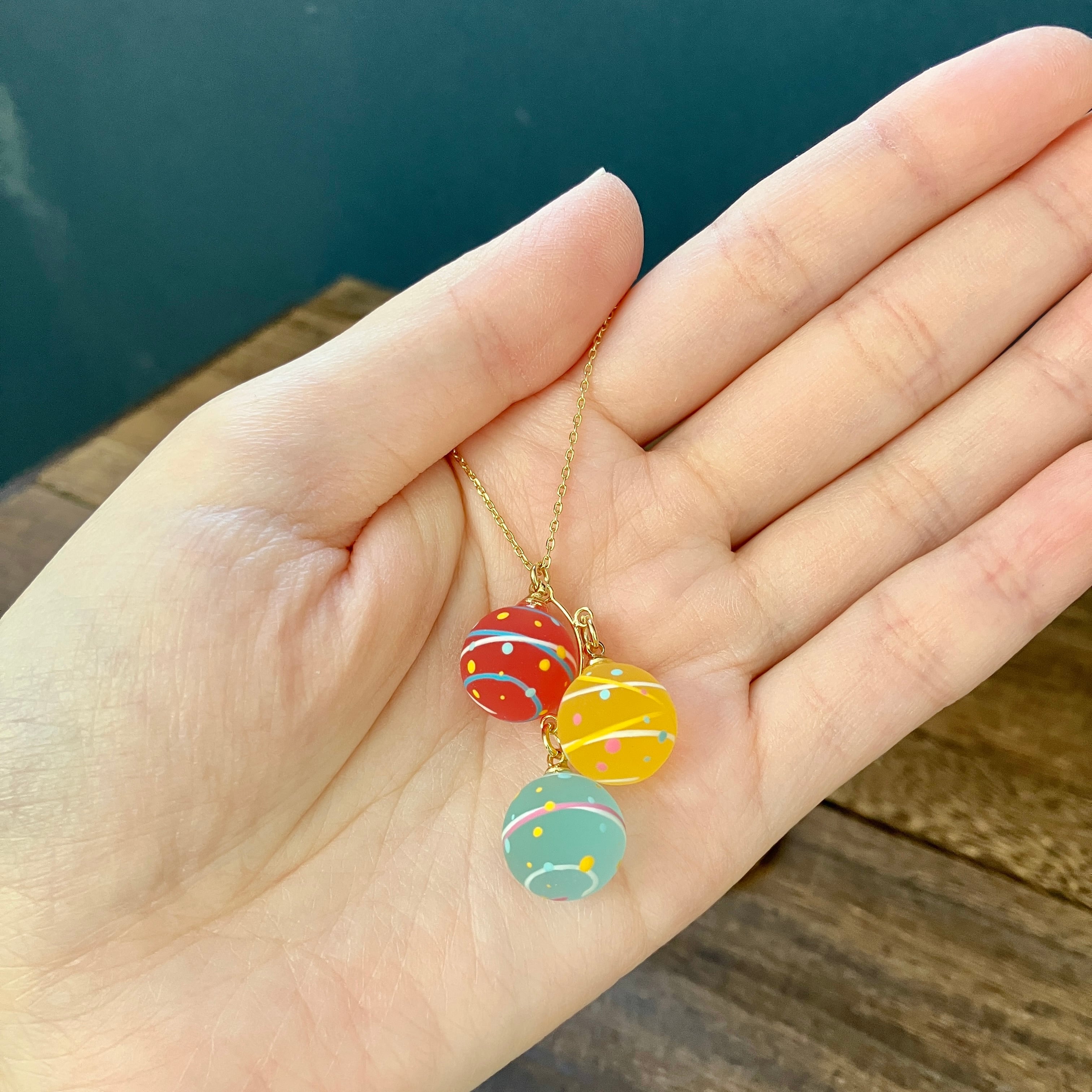 小さな水風船を3色組み合わせてネックレスに仕立てました。