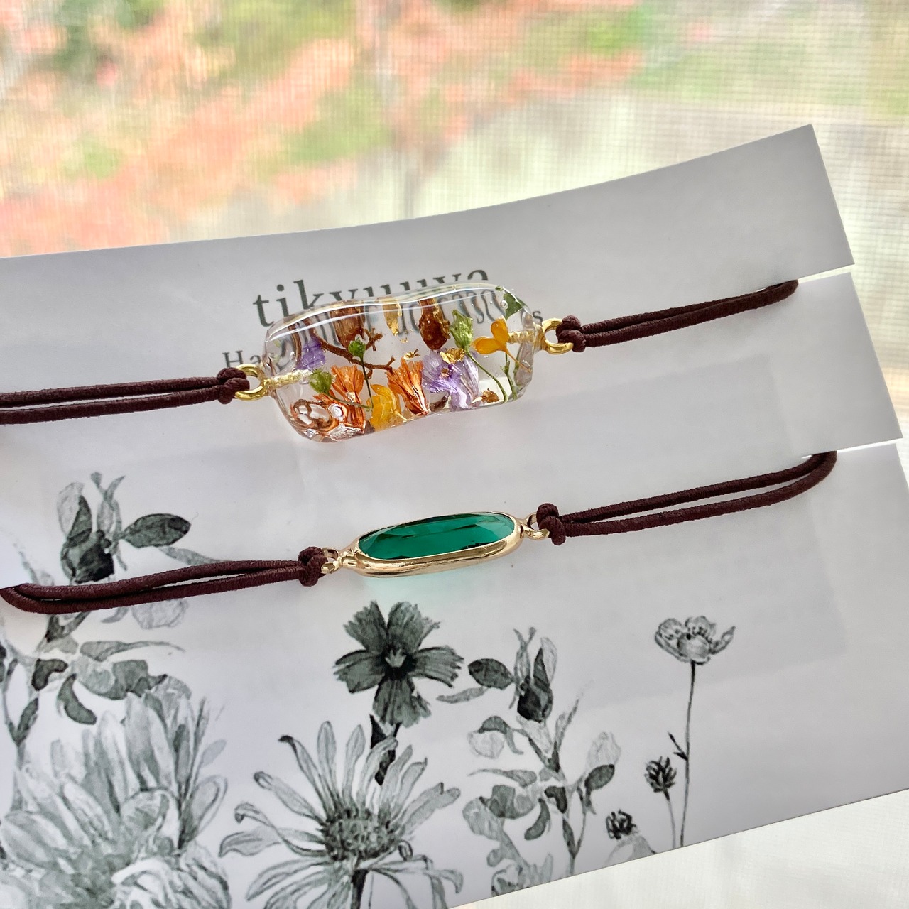 ガラスチャームのシンプルなヘアゴム ブレスと一緒に重ねづけにおすすめな2色セットです^ ^