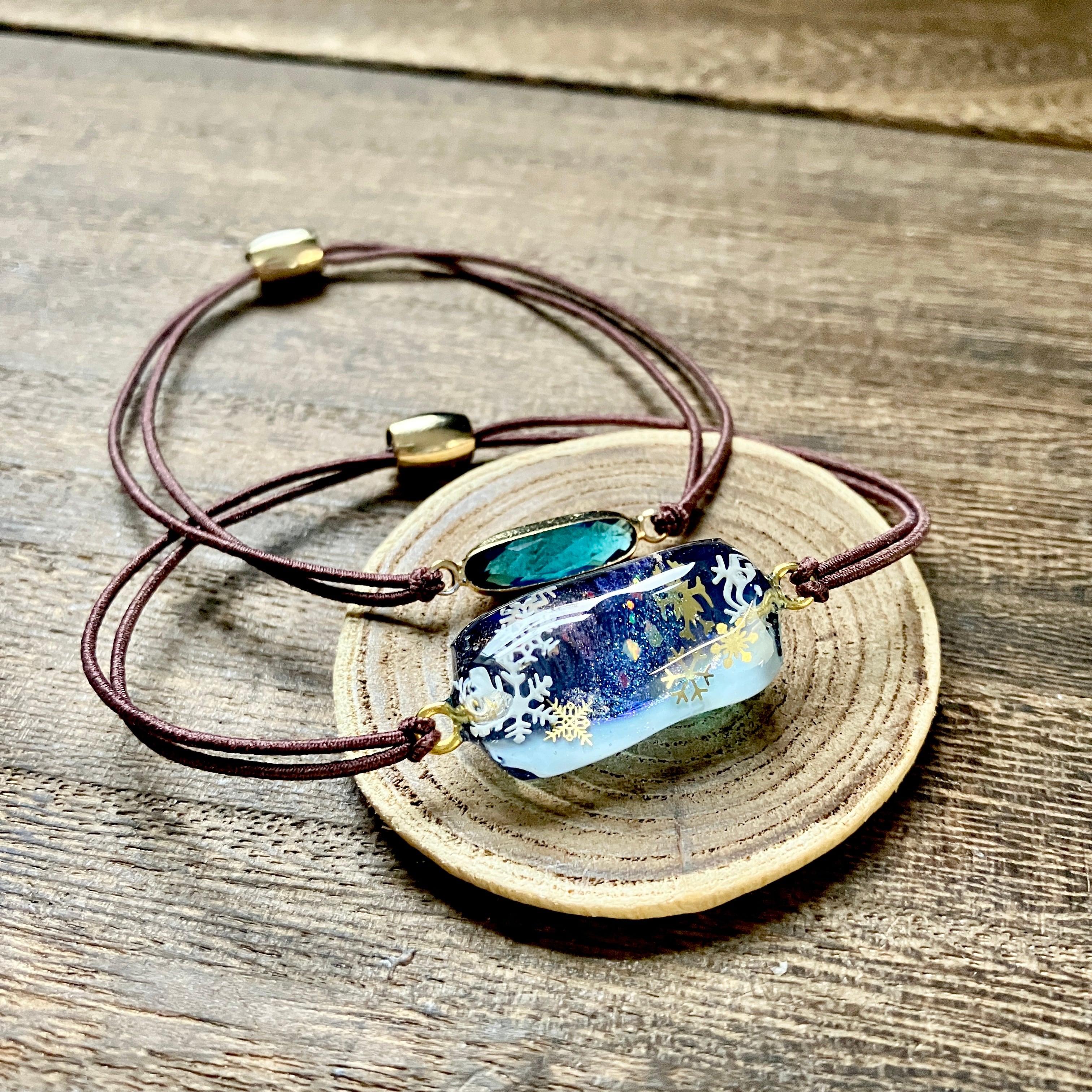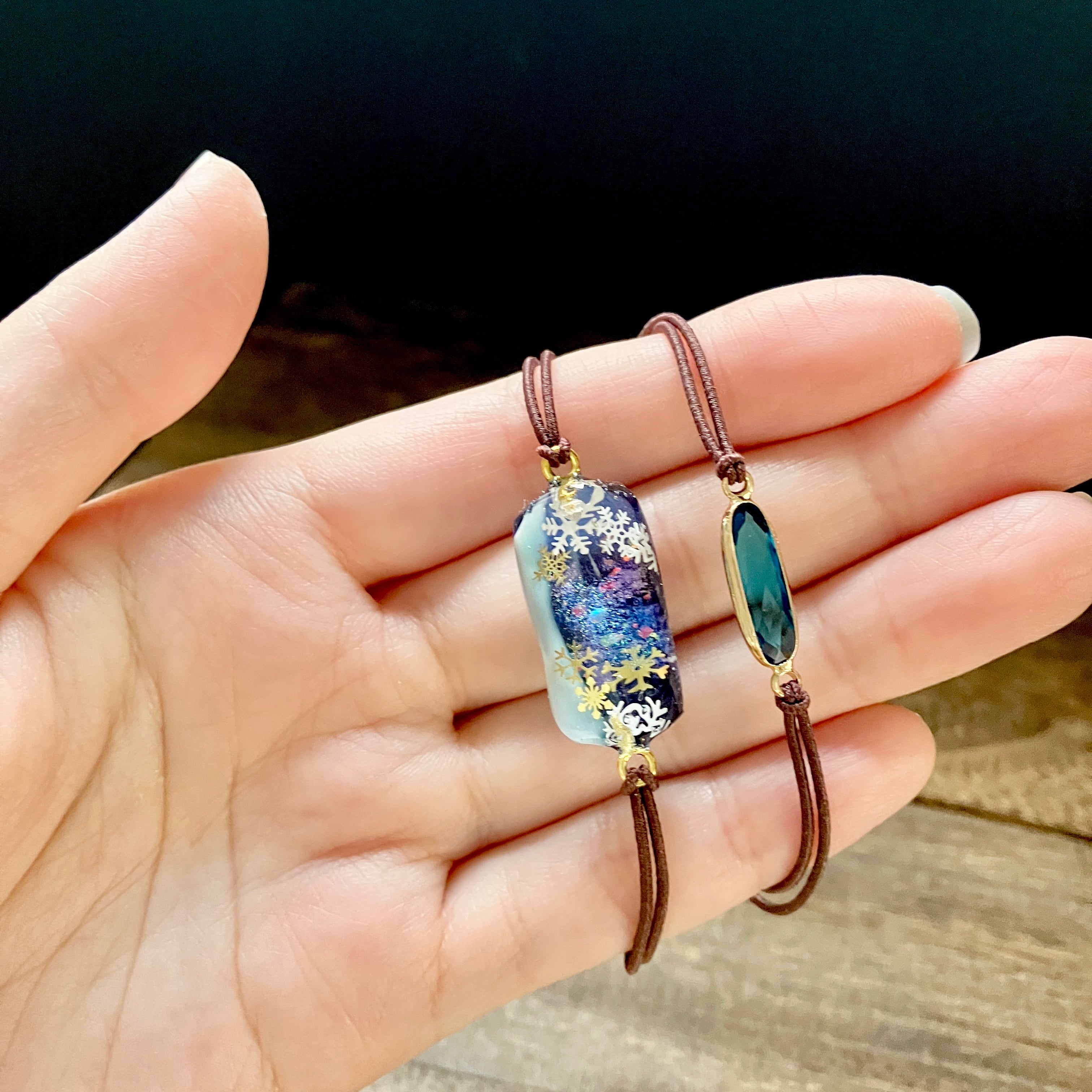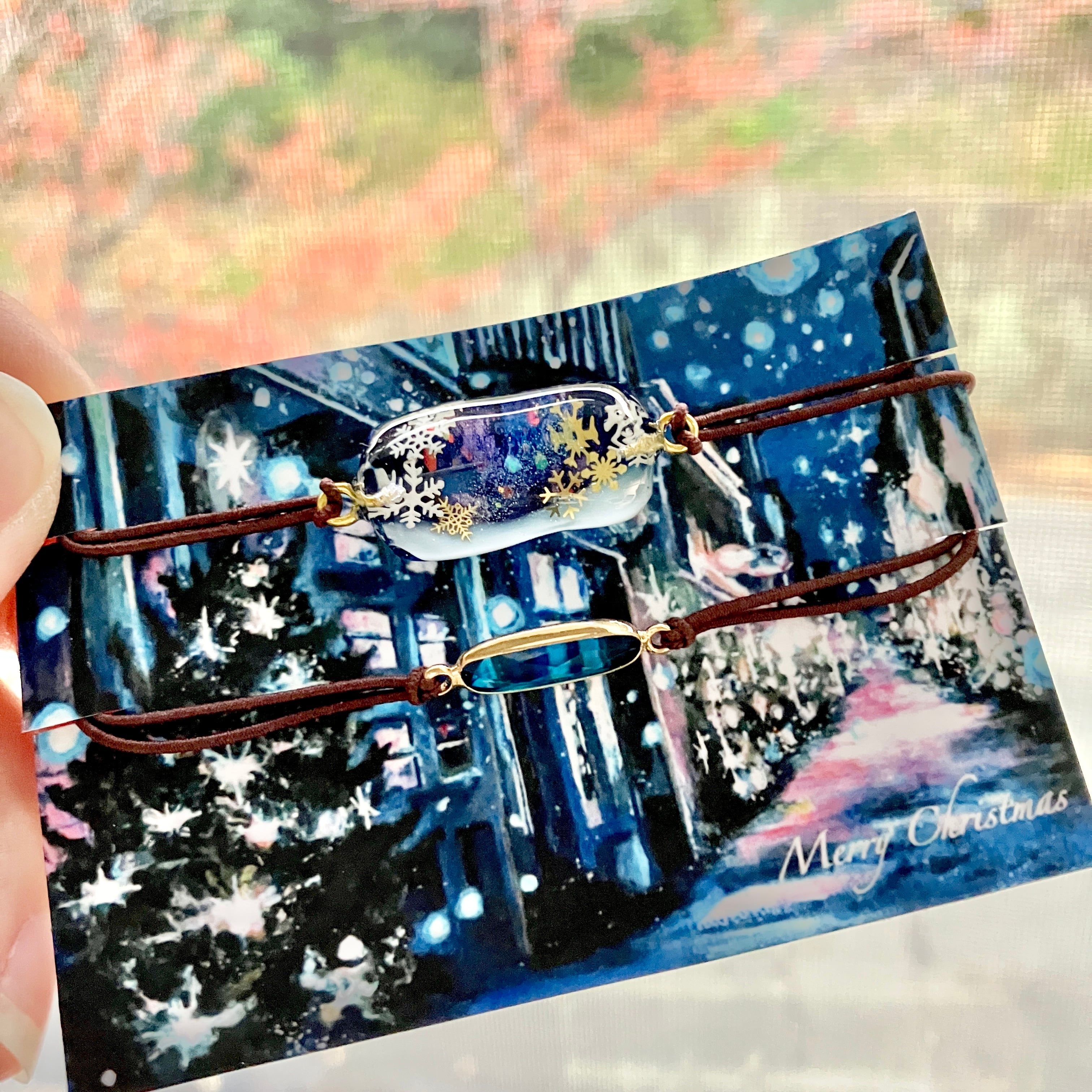 雪チャームのシンプルなヘアゴム ブレスと一緒に重ねづけにおすすめな2色セットです^ ^