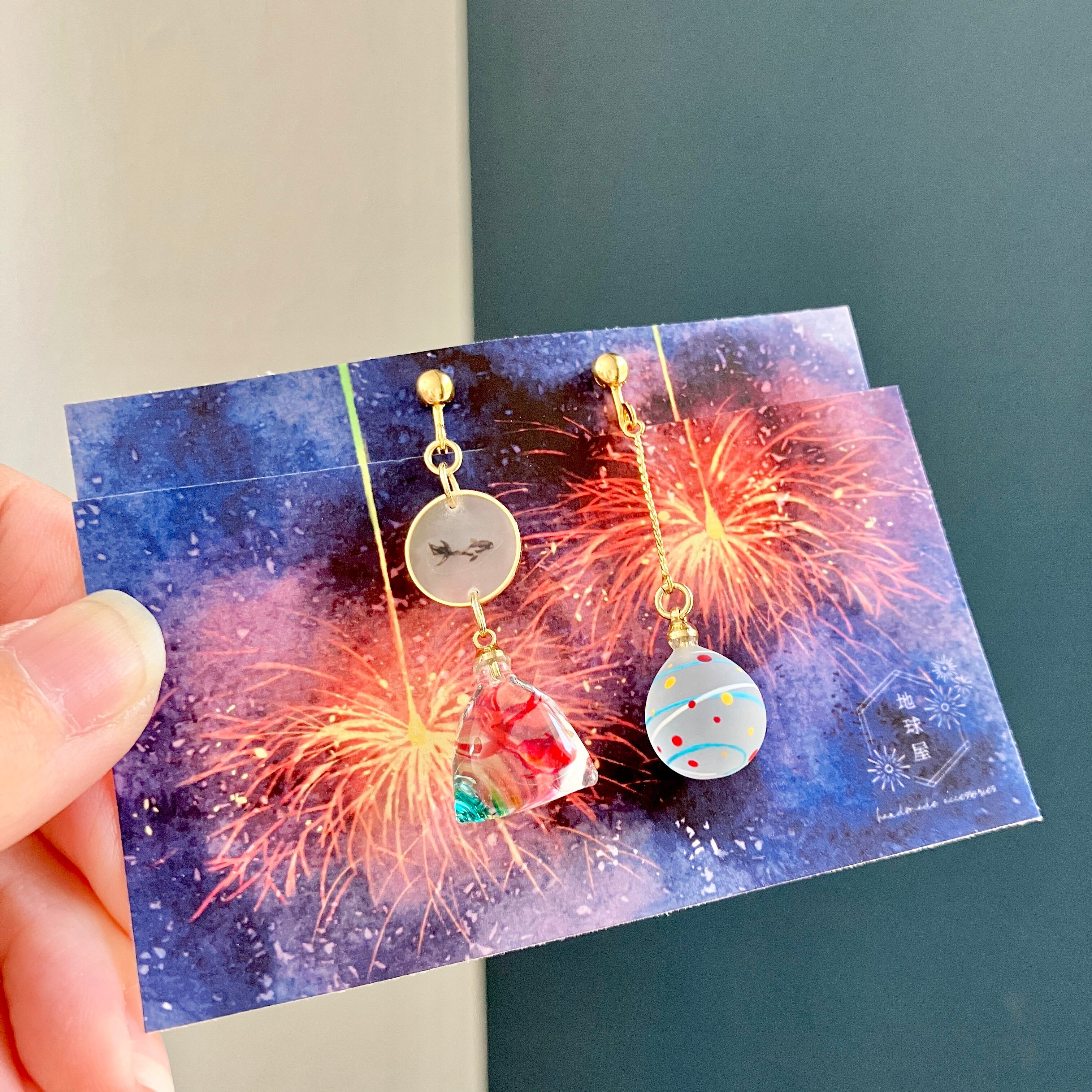 手描き模様の水風船とポイ付きの金魚すくいモチーフに涼しげな世界を閉じ込めました(^^)