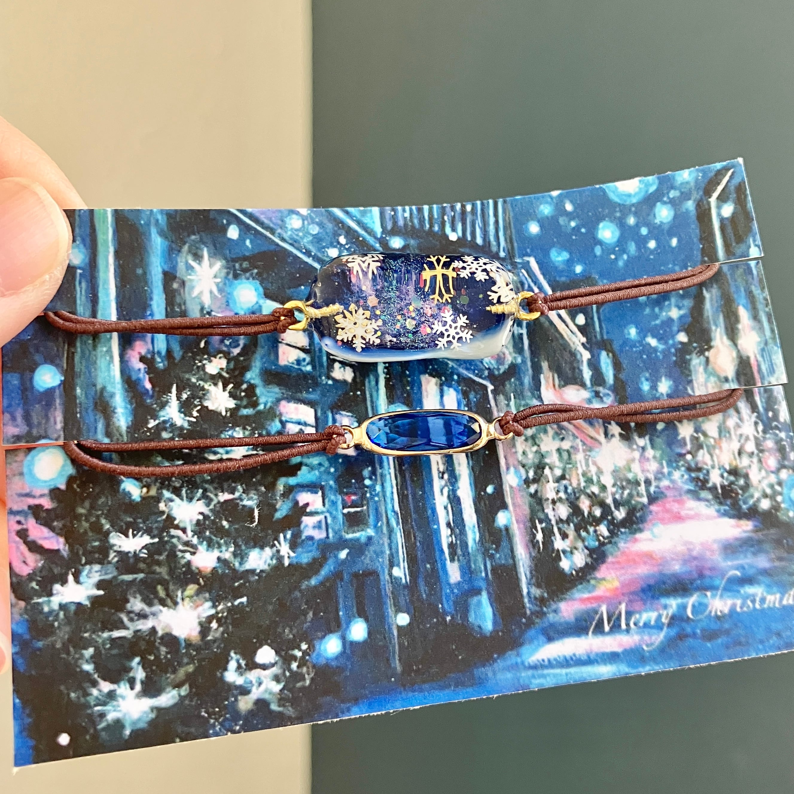 雪チャームのシンプルなヘアゴム ブレスと一緒に重ねづけにおすすめな2色セットです^ ^