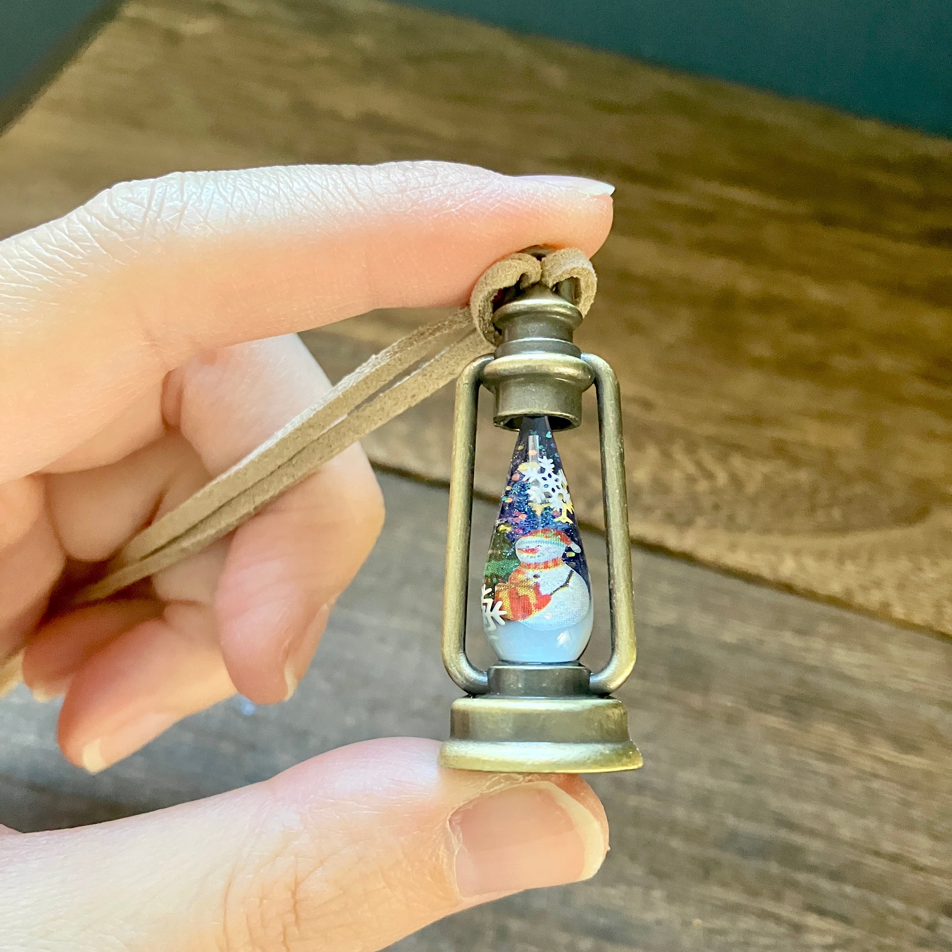 スノードームのようなランタンペンダント(雪チャーム付き)
