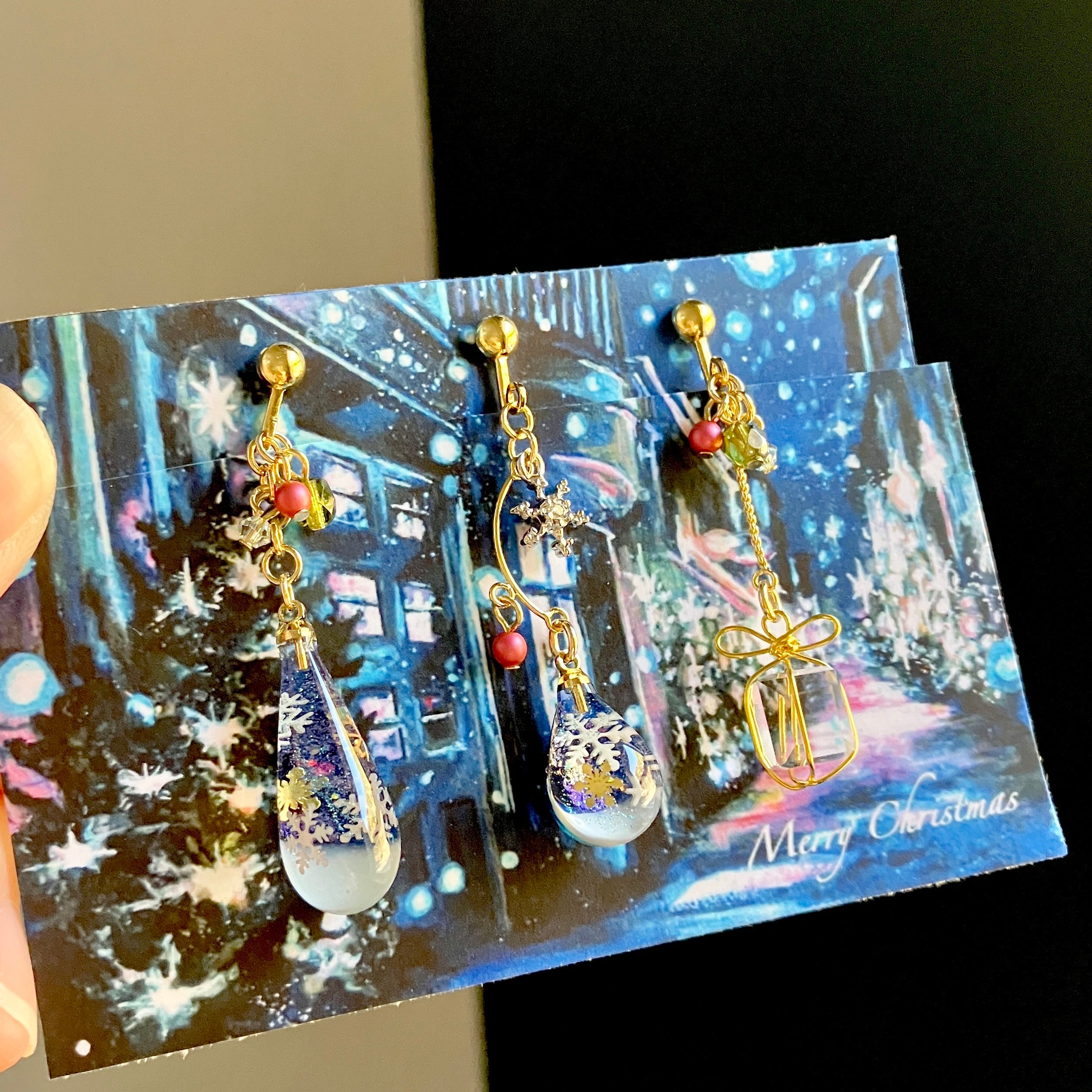プレゼントボックスチャームの耳飾りと3点セットです。