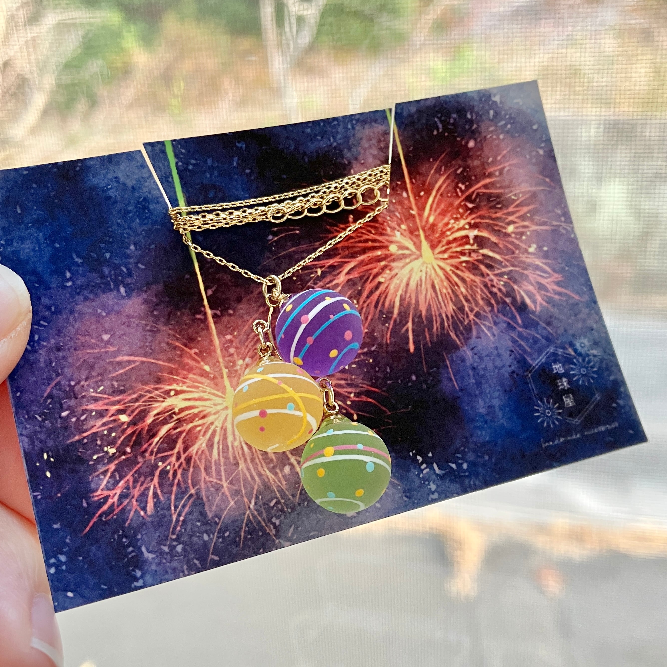 小さな水風船を3色組み合わせてネックレスに仕立てました。