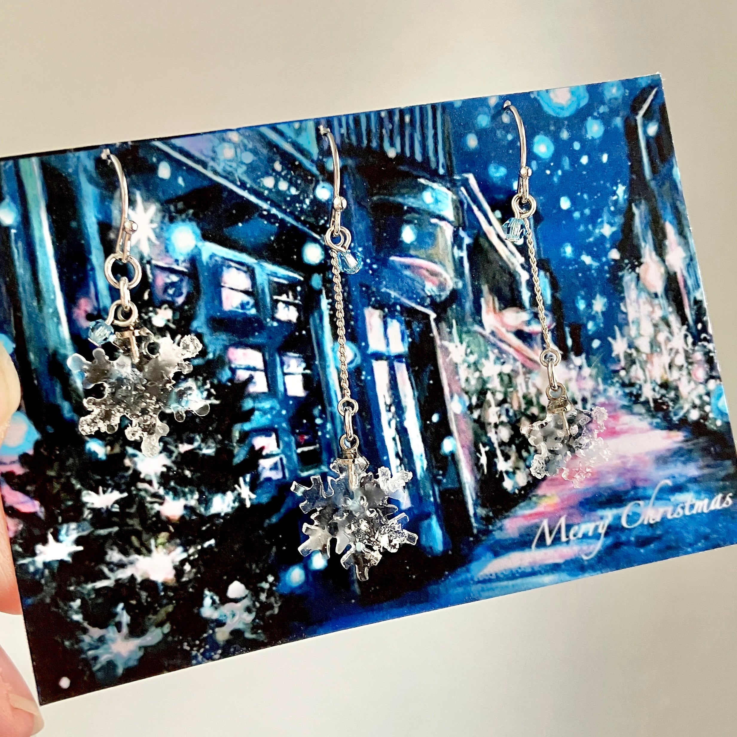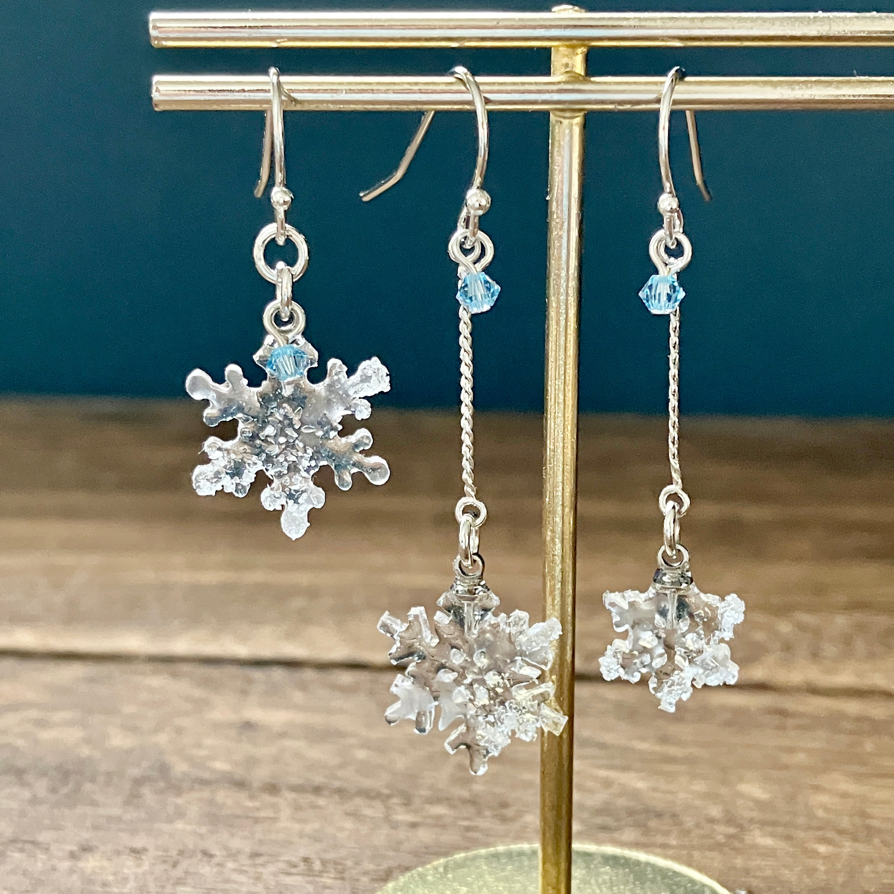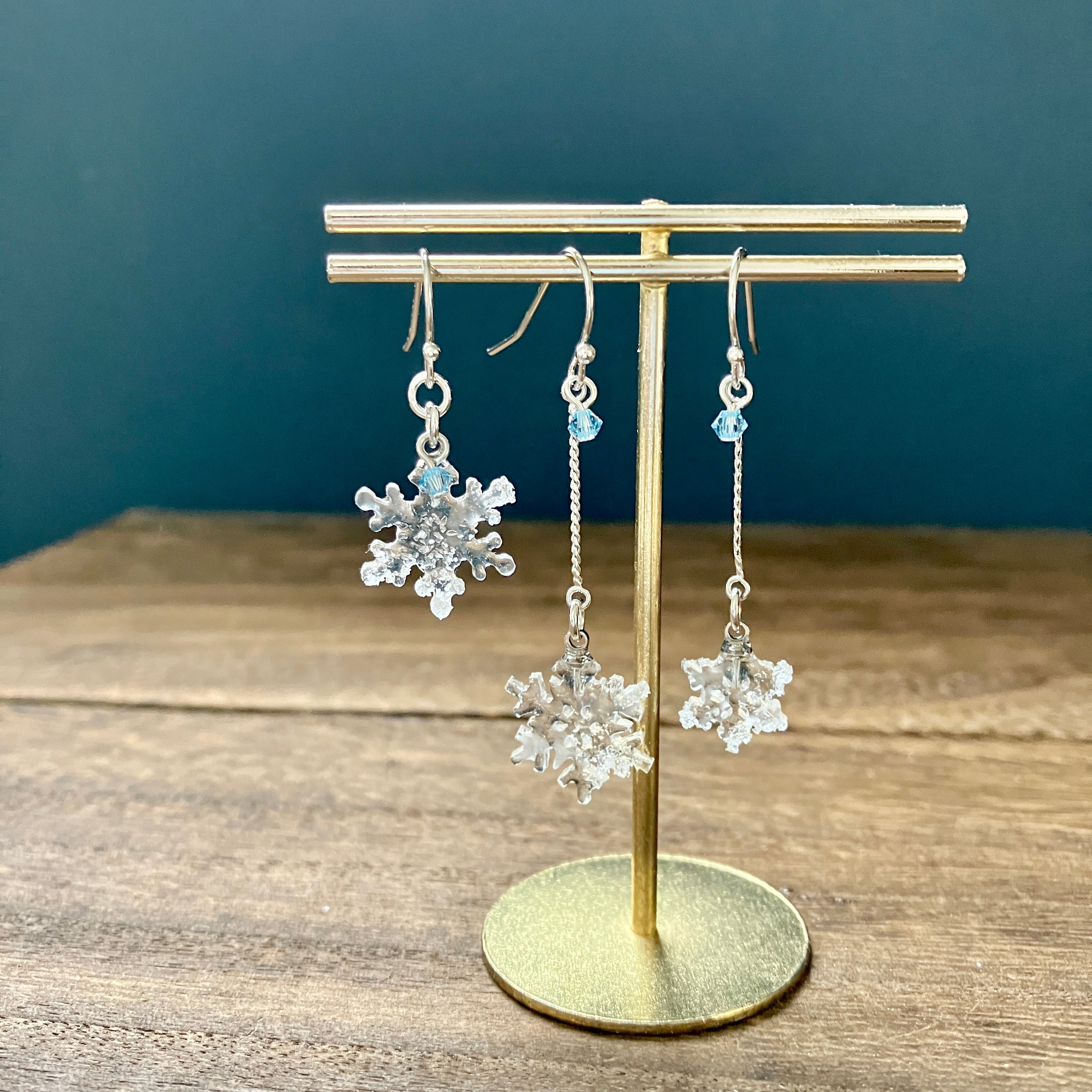 雪の結晶モチーフのシンプルな耳飾り。