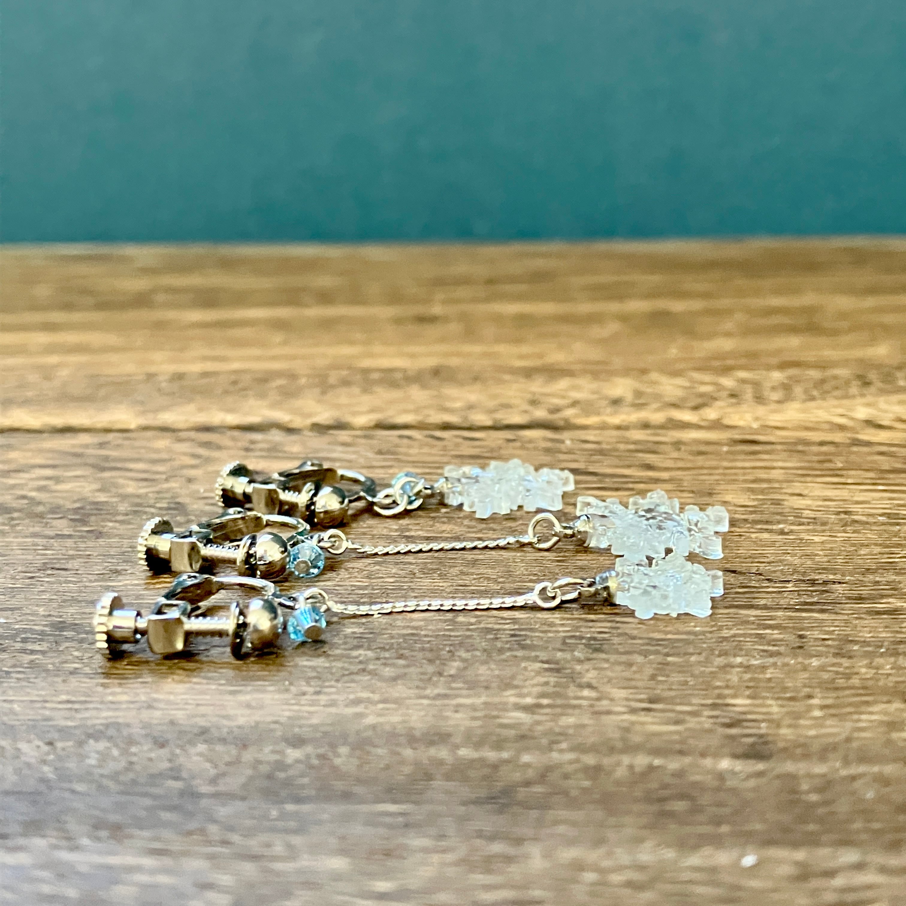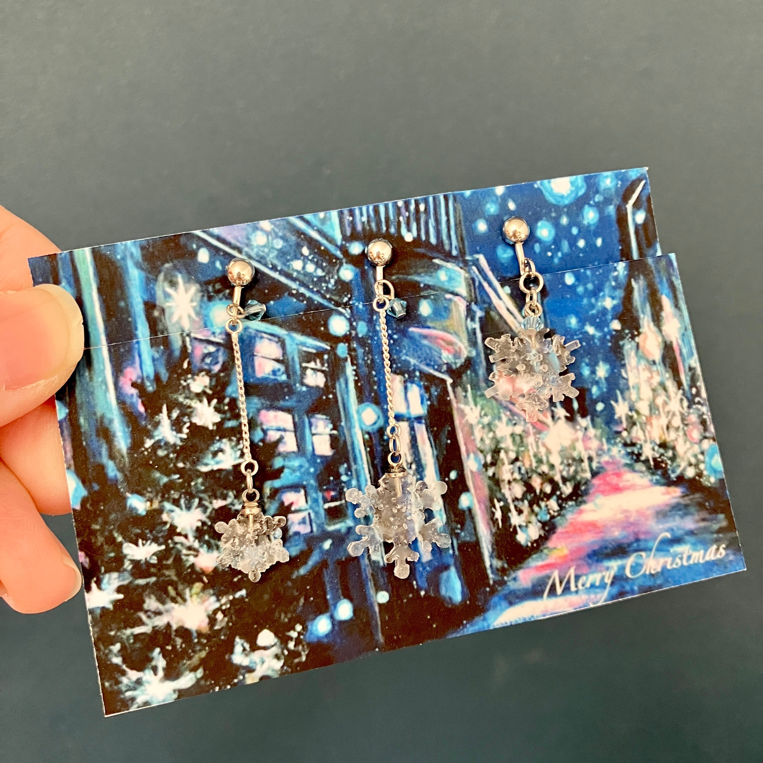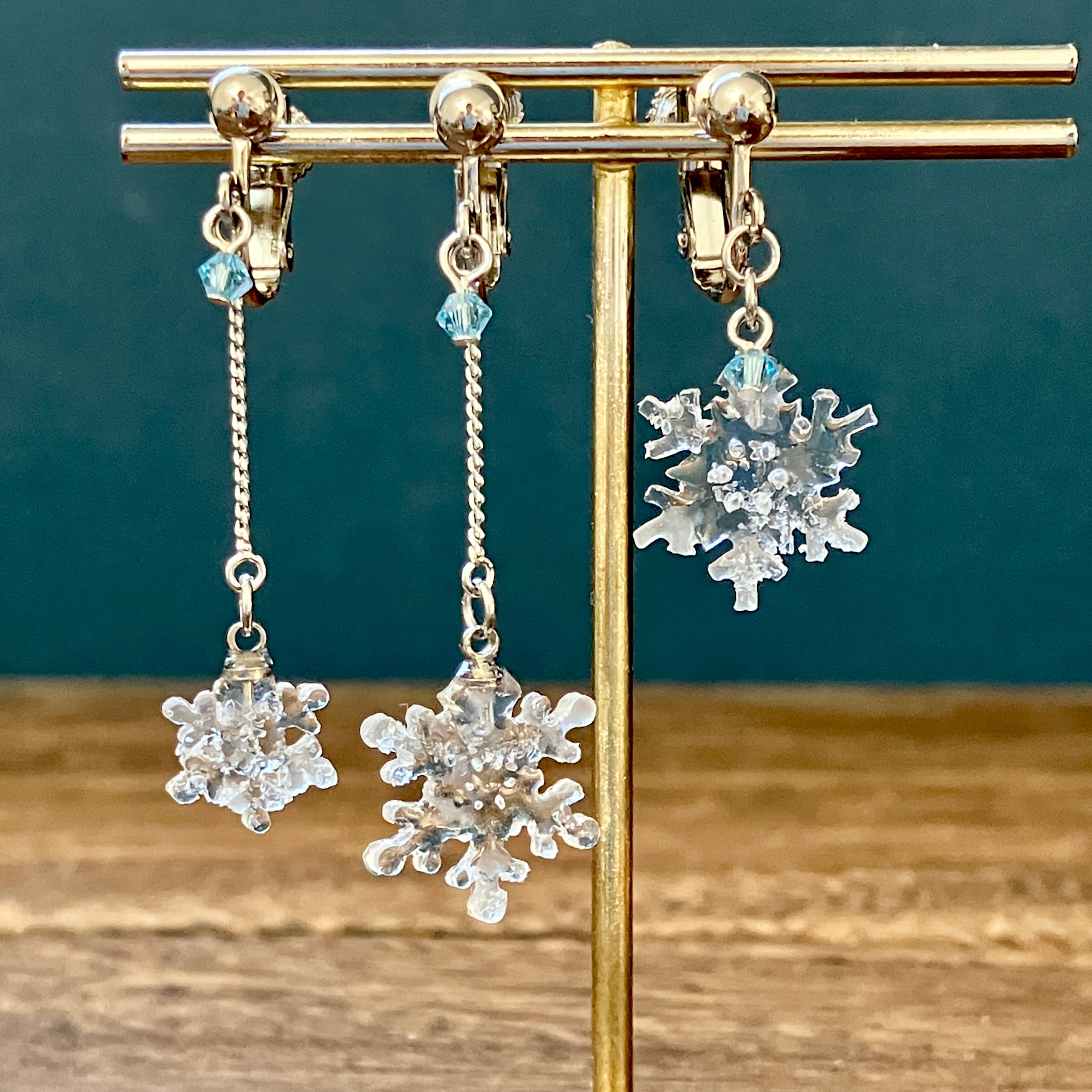スワロフスキーも一粒ワンポイントに取り付けて、冬限定の耳飾りに仕上げました。