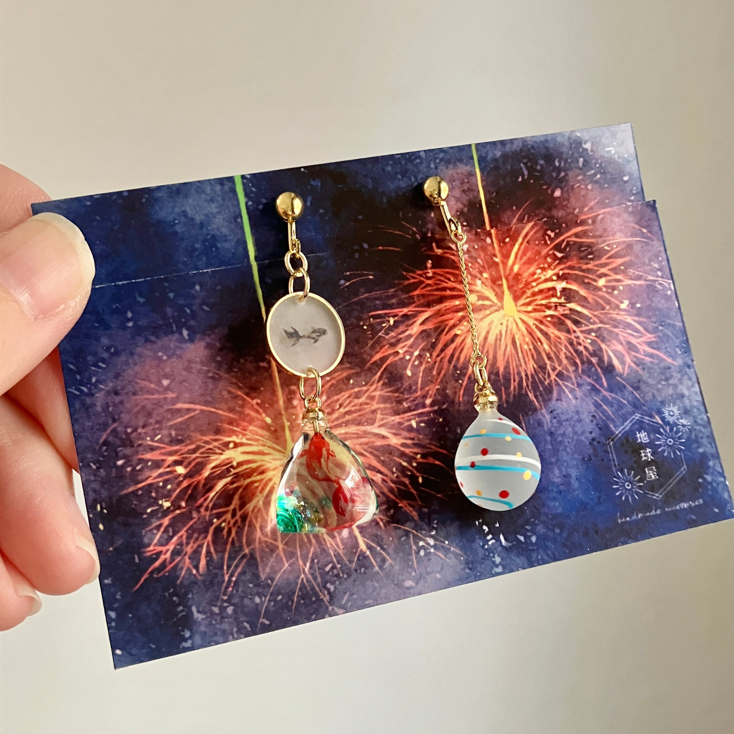 手描き模様の水風船とポイ付きの金魚すくいモチーフに涼しげな世界を閉じ込めました(^^)