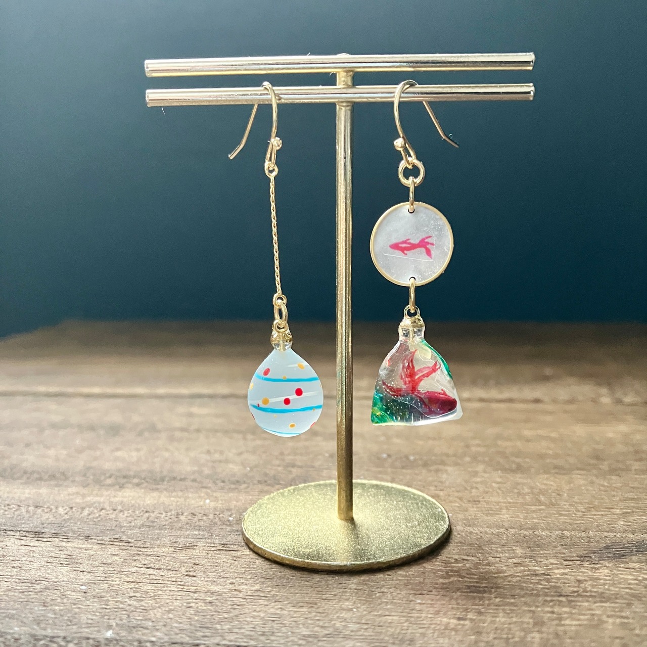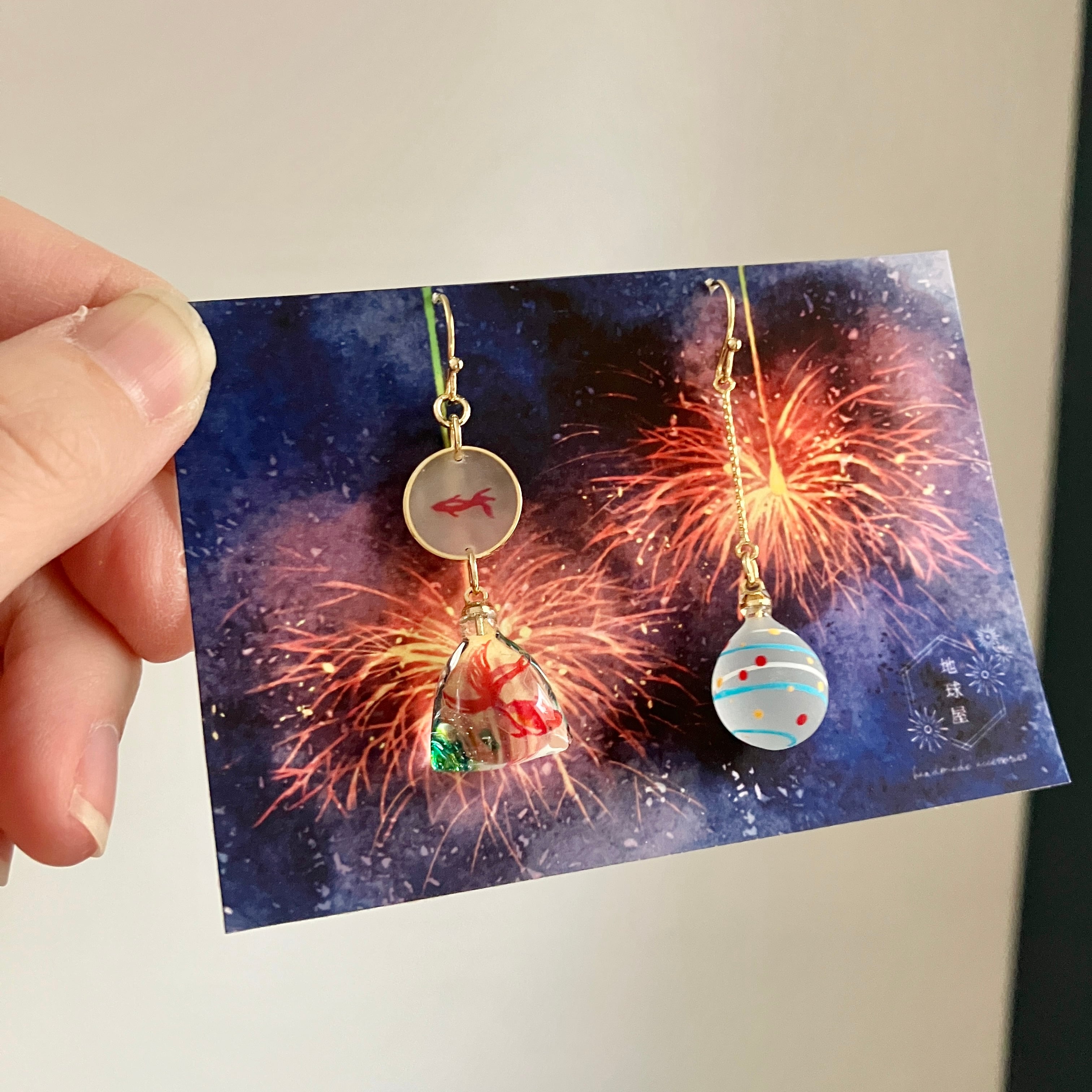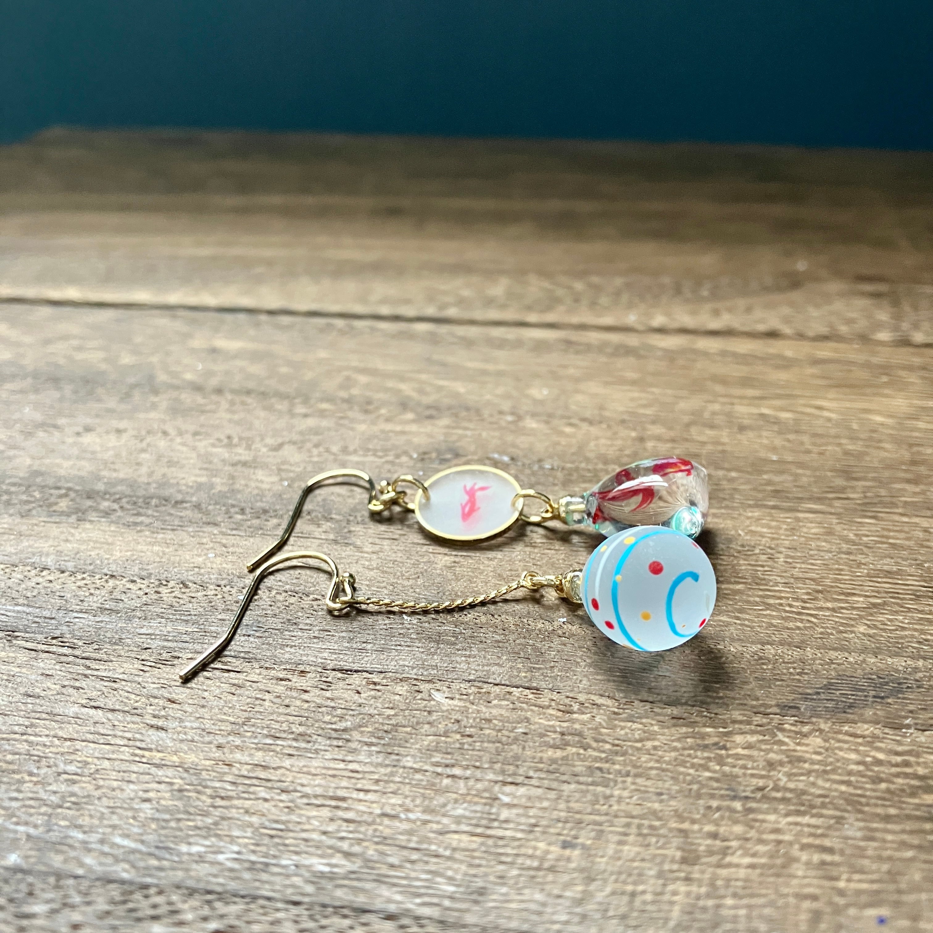 金魚すくいと小さな水風船のピアス
