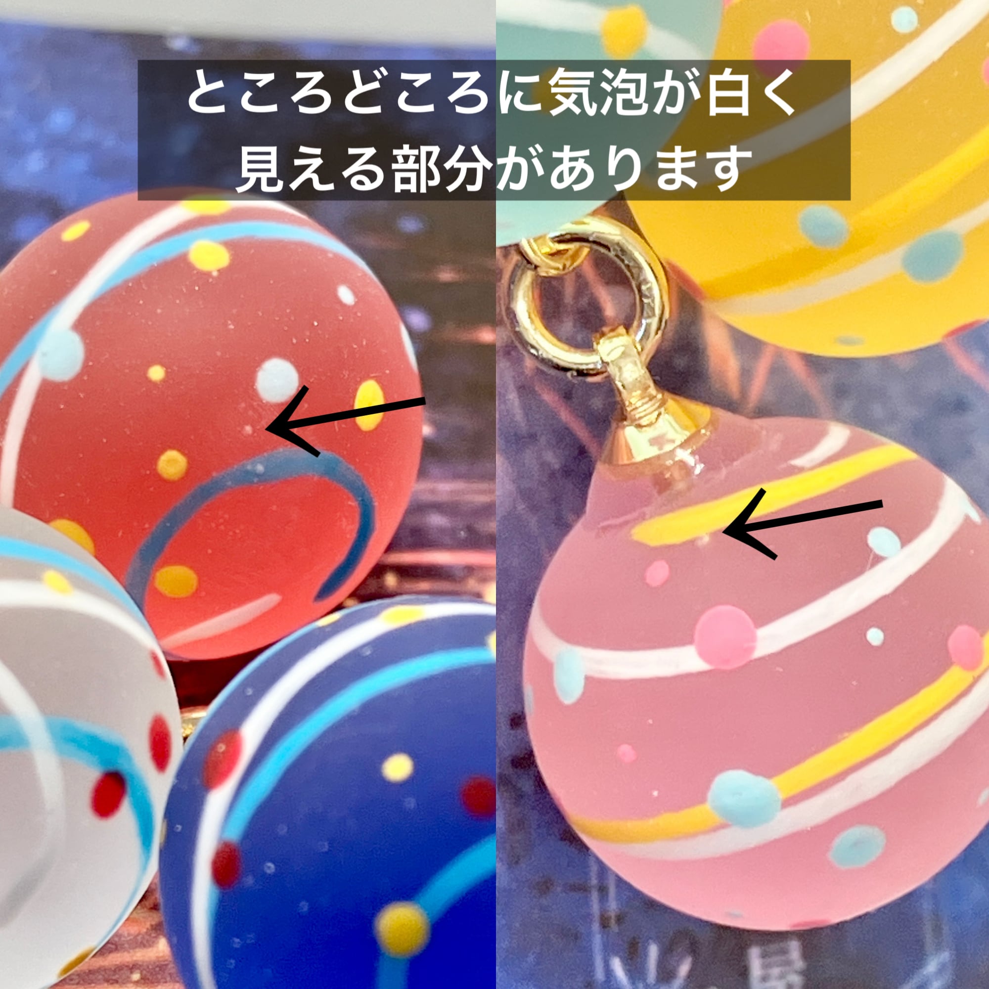 12ミリの小さな球体にヨーヨー模様を手描きしました(^^)