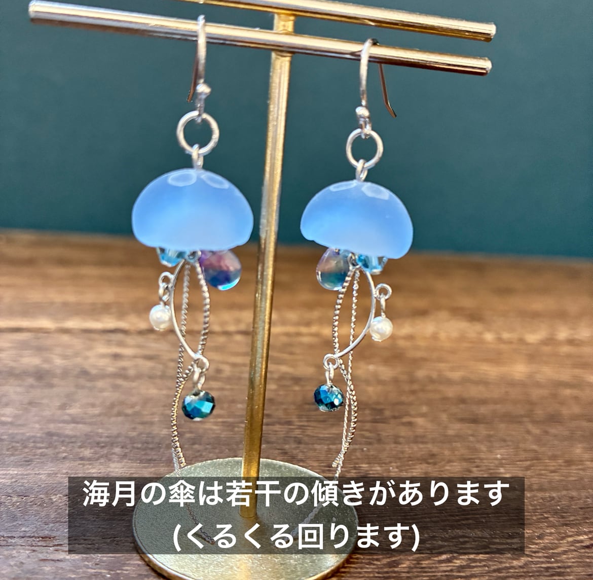 海月をモチーフにしたゆらゆら揺れる耳飾り。