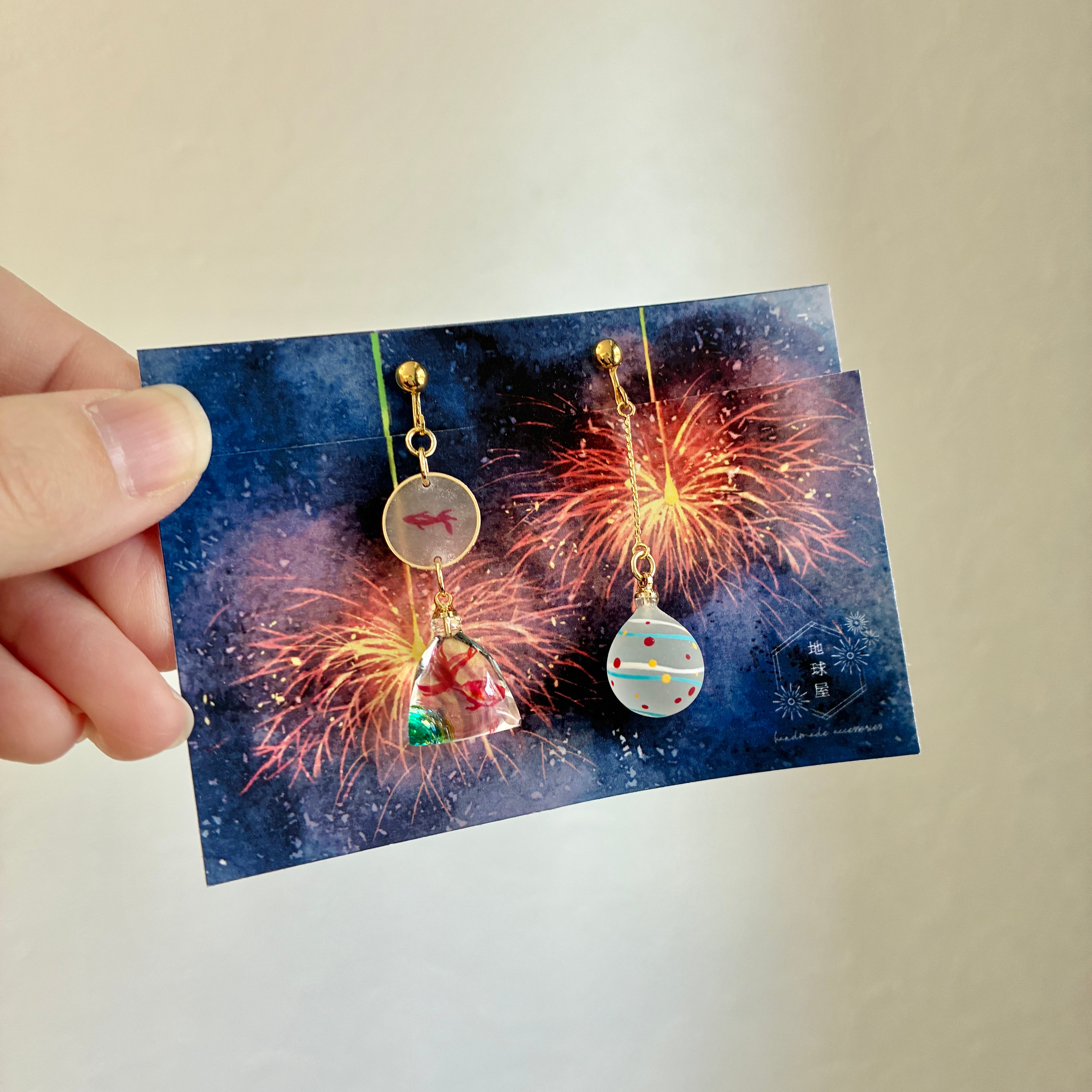 手描き模様の水風船とポイ付きの金魚すくいモチーフに涼しげな世界を閉じ込めました(^^)