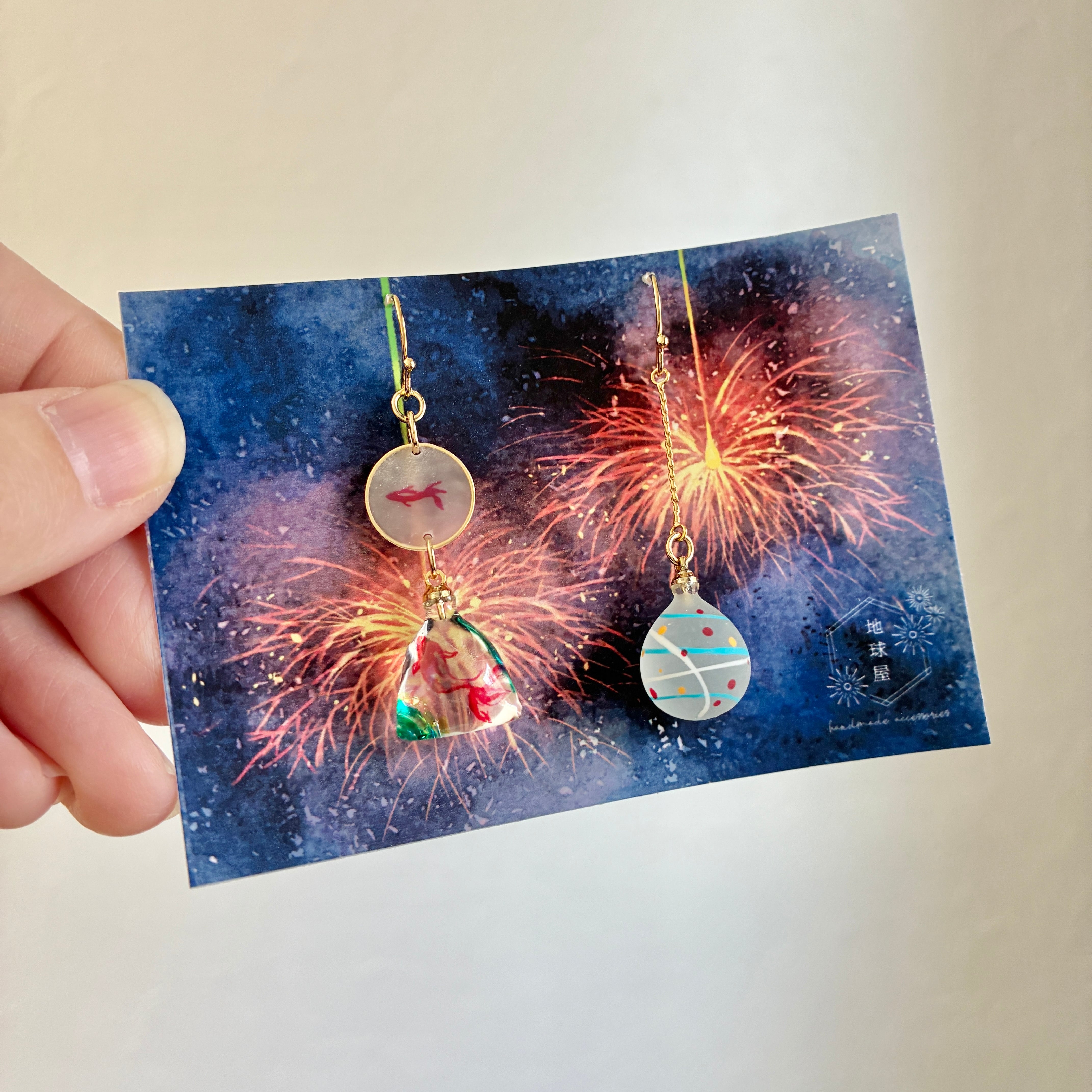 小さな水風船とポイ付きの金魚すくいモチーフに涼しげな世界を閉じ込めました(^^)