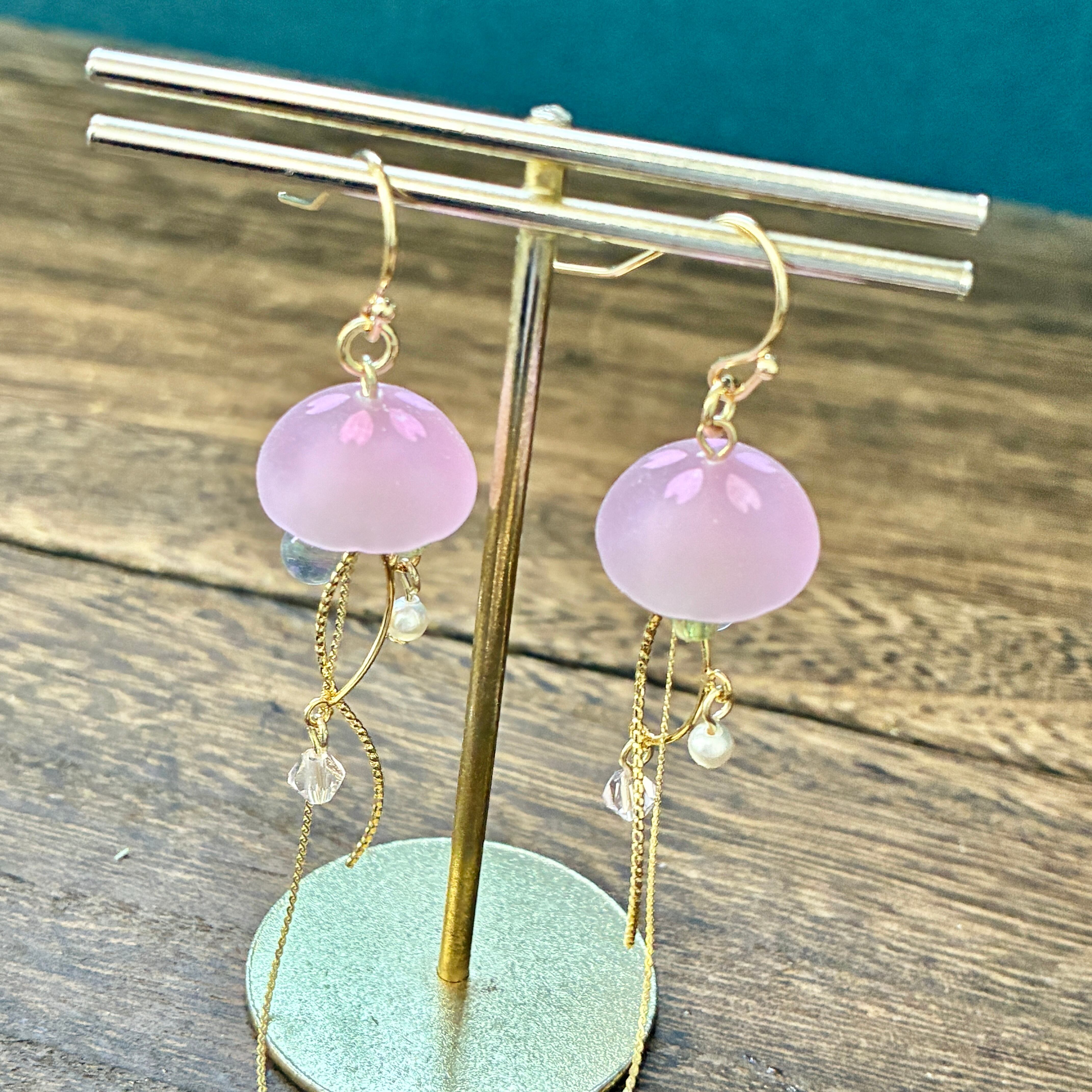 桜と海月をモチーフにしたゆらゆら揺れる耳飾り。