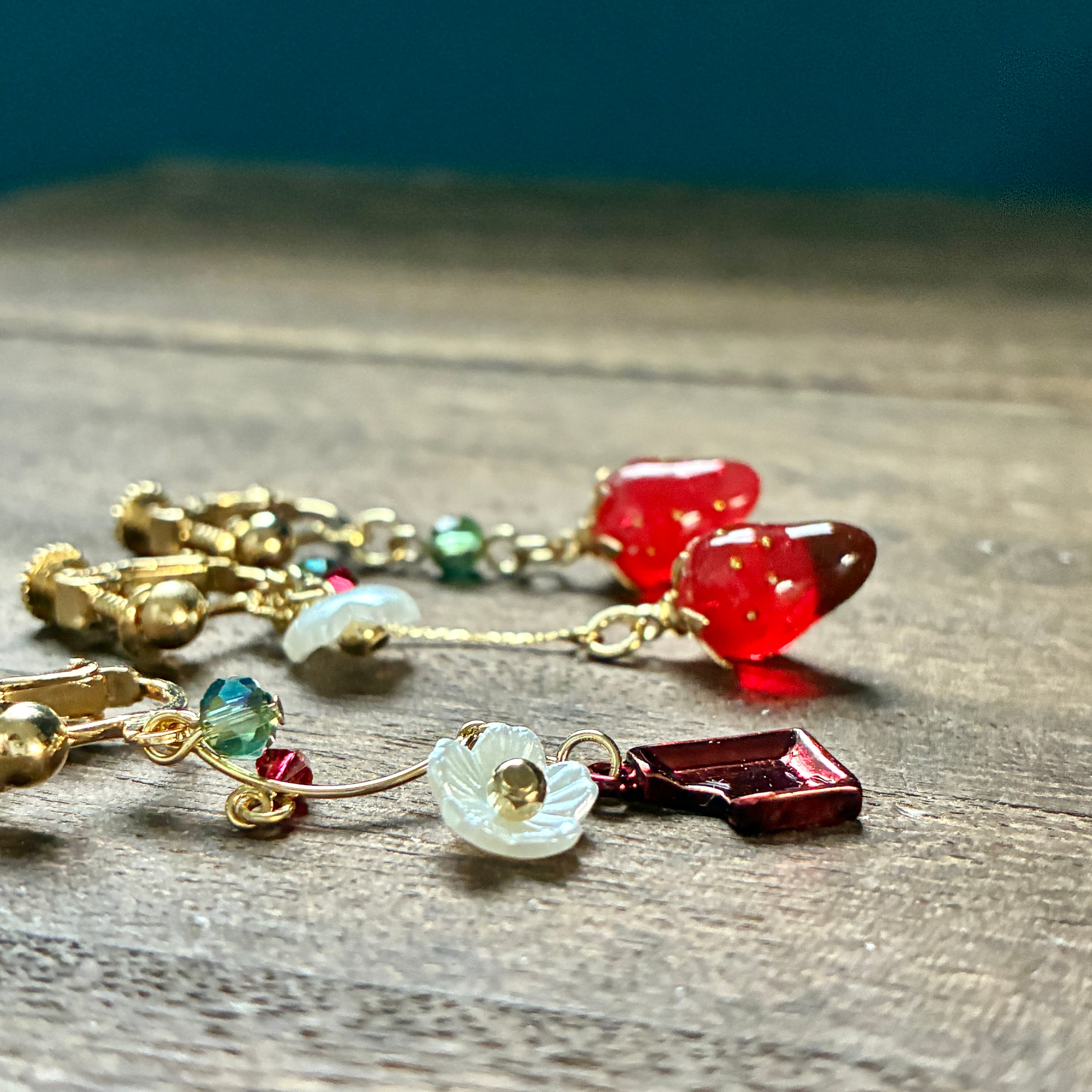 まっ赤な苺とチョコ付きの苺、そしてチョコチャームを組み合わせたモチーフの3個セットです!