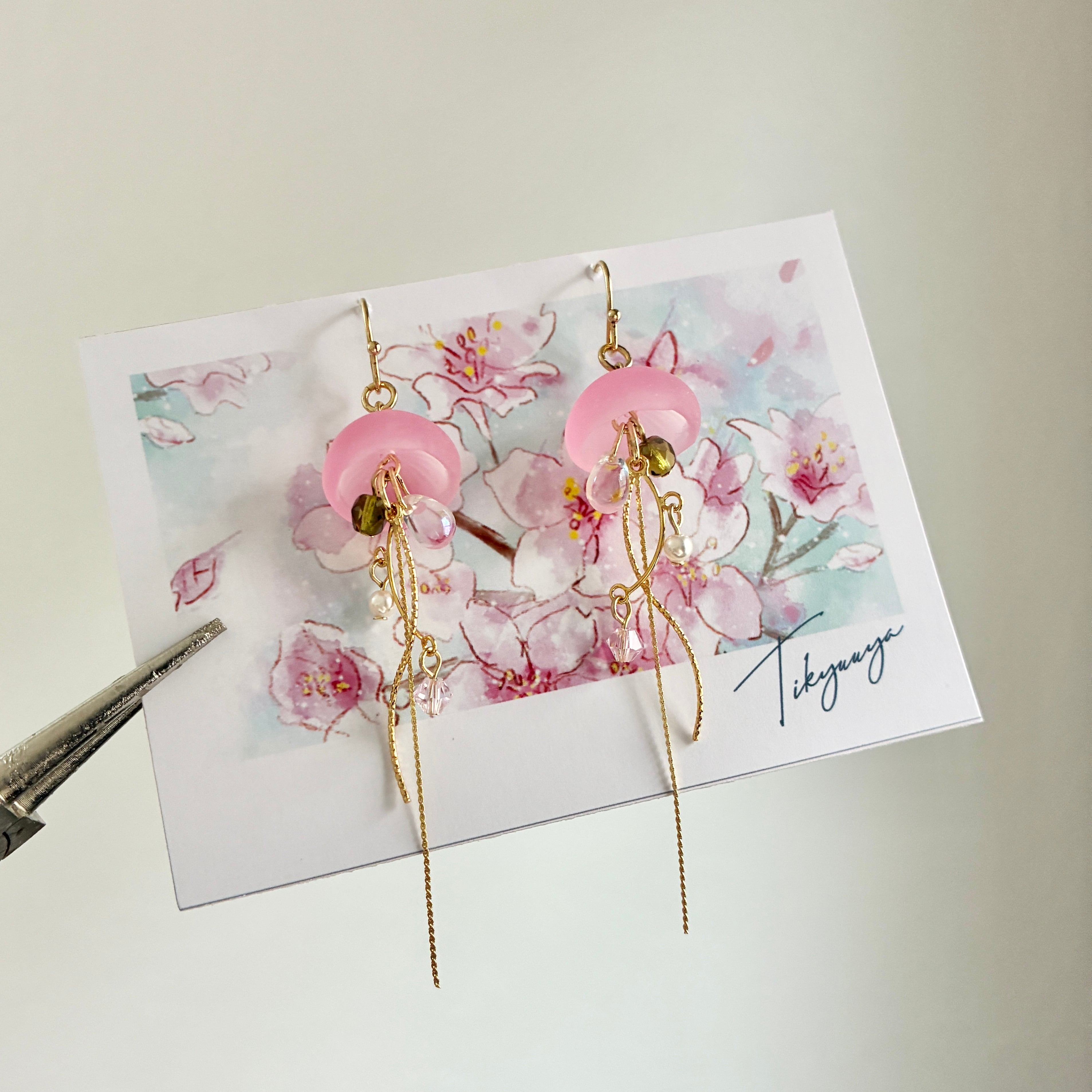 桜と海月をモチーフにしたゆらゆら揺れる耳飾り。