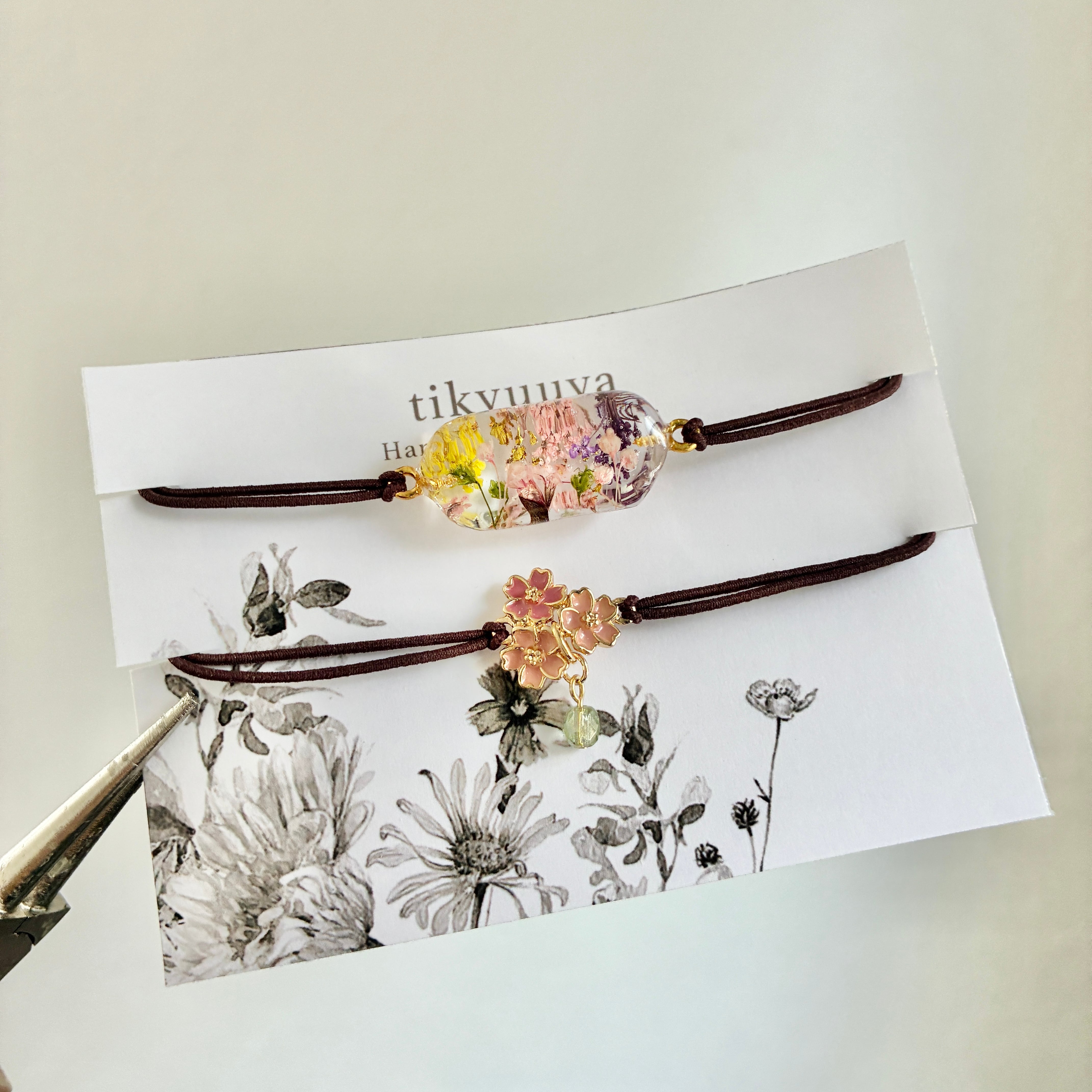 桜チャームのシンプルなヘアゴム ブレスと一緒に重ねづけにおすすめな2色セットです^ ^