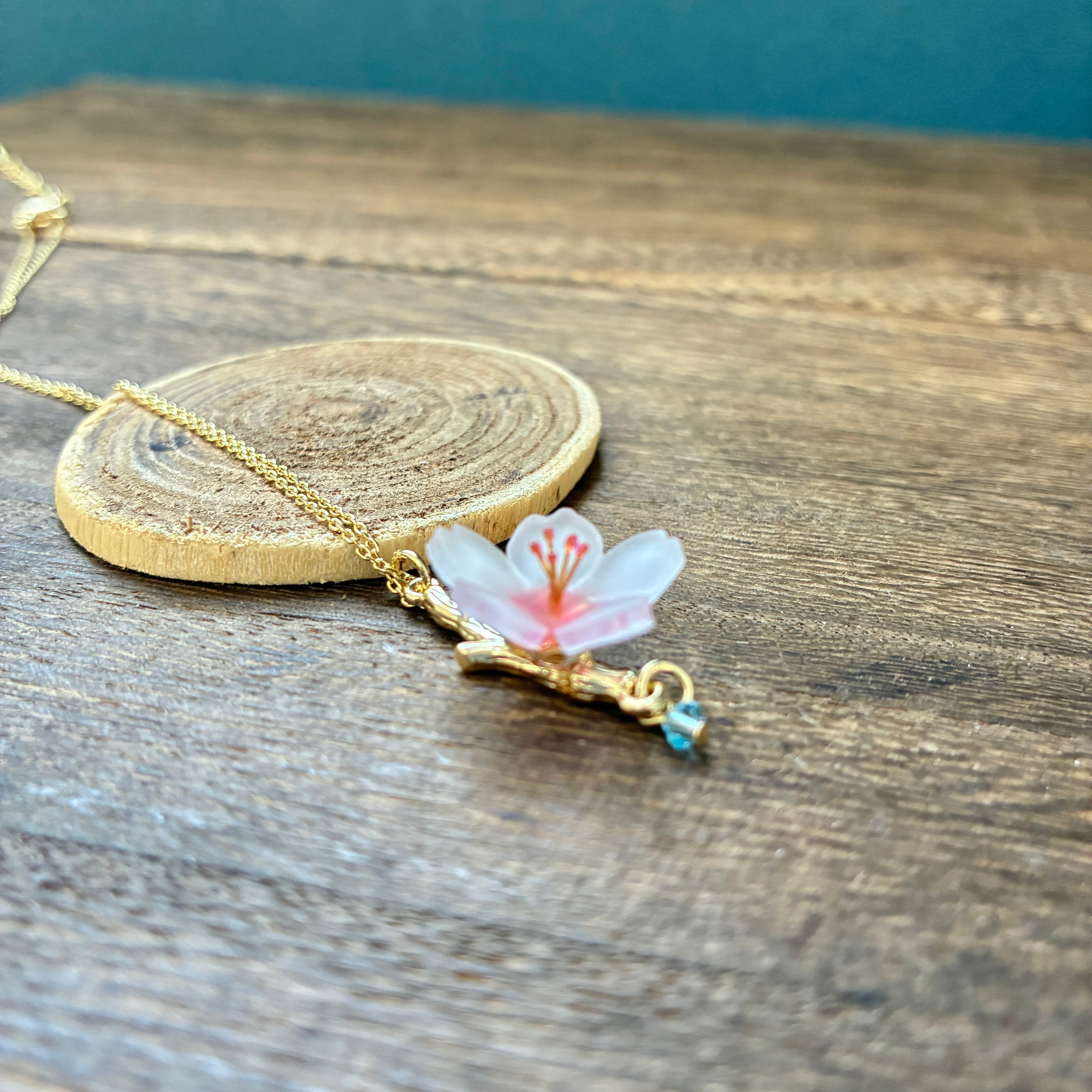 一輪の桜のモチーフをシンプルなネックレスに仕立てました。