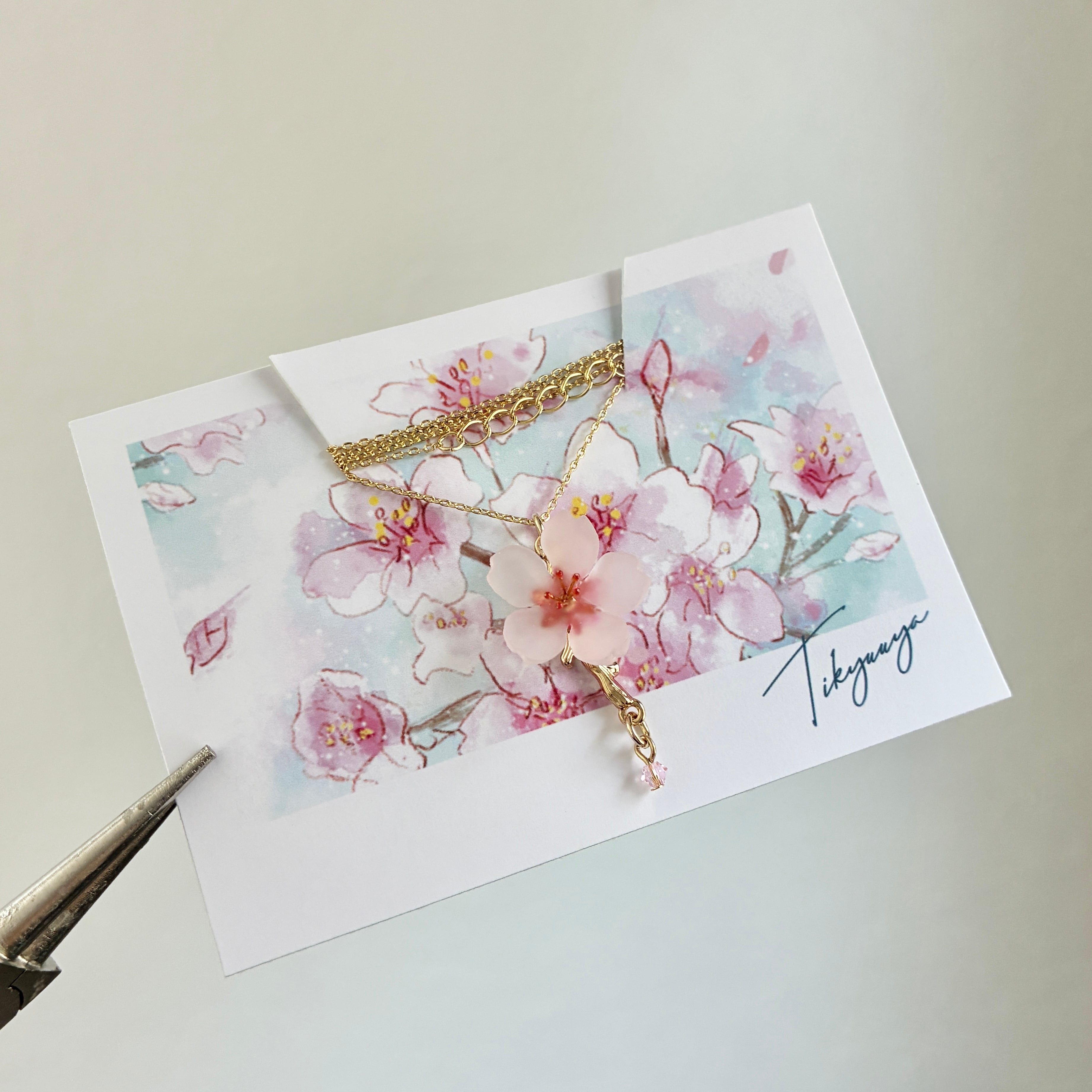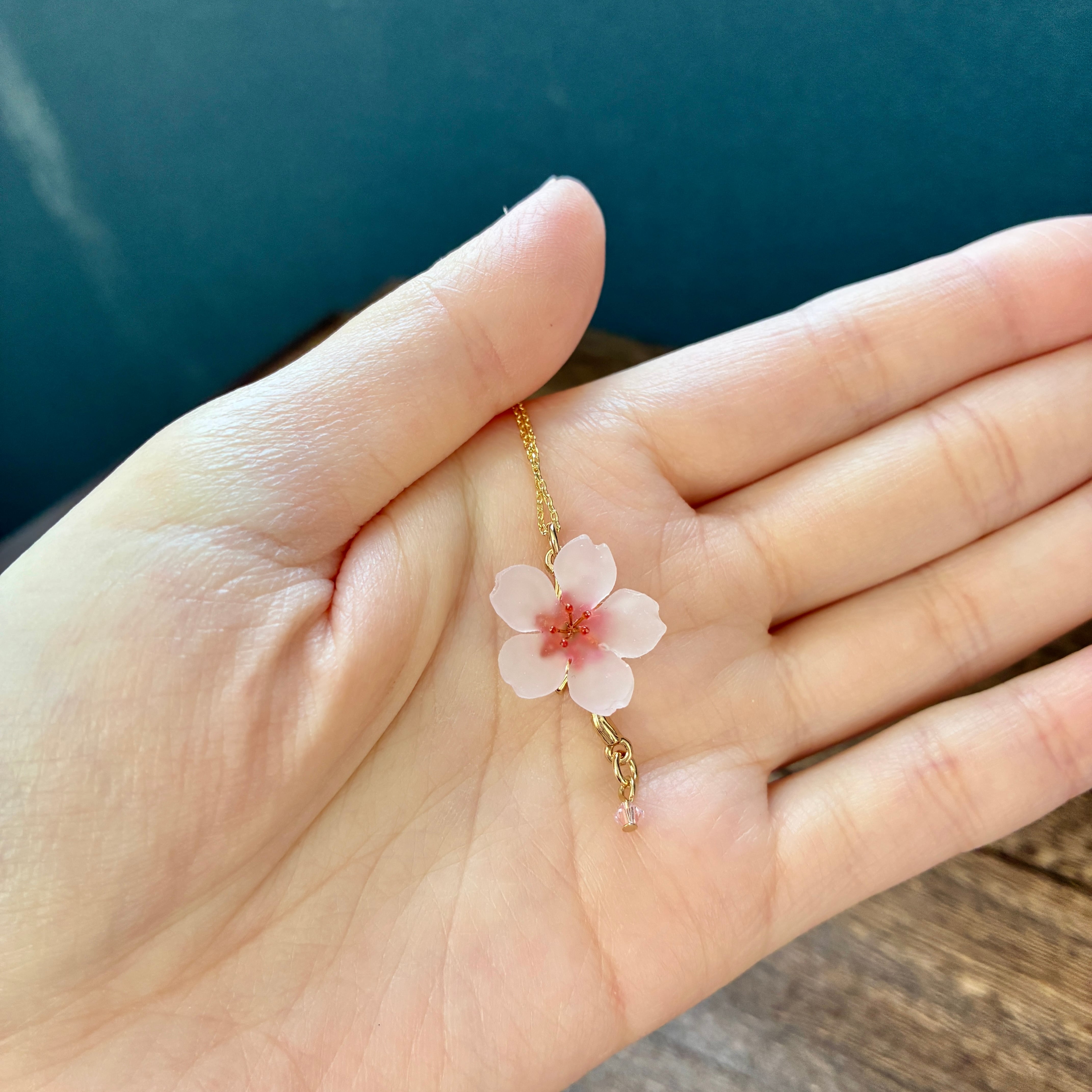 一輪の桜のモチーフをシンプルなネックレスに仕立てました。