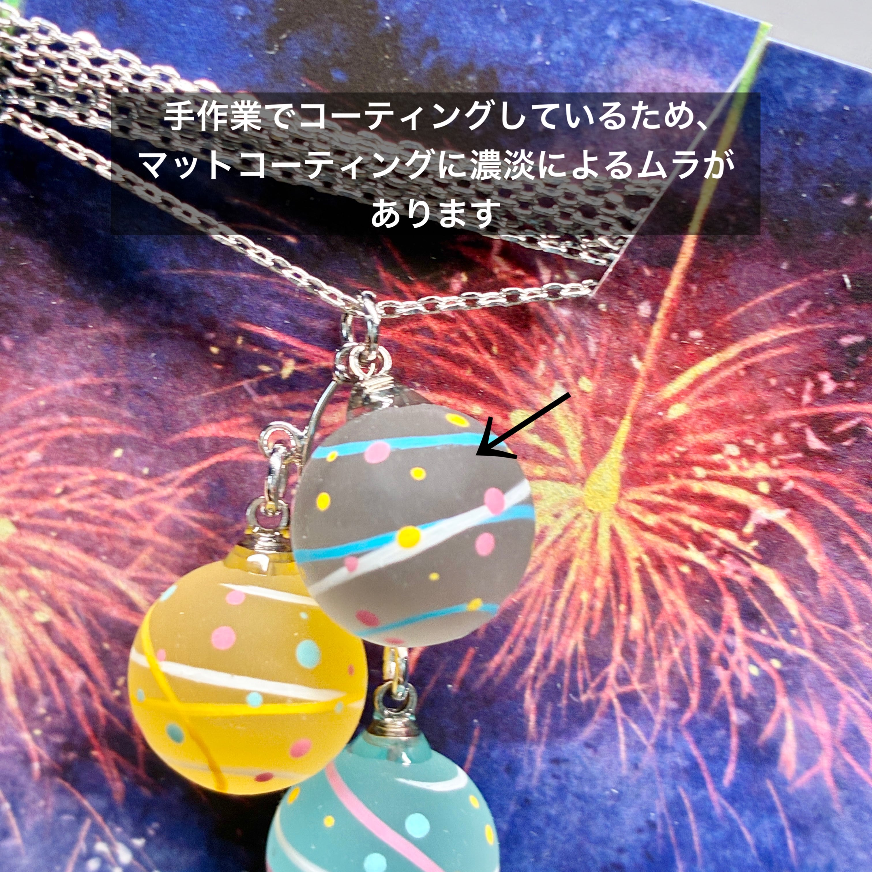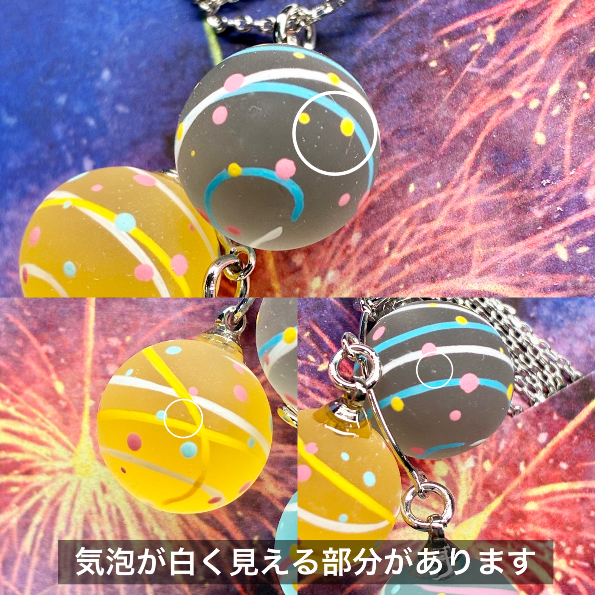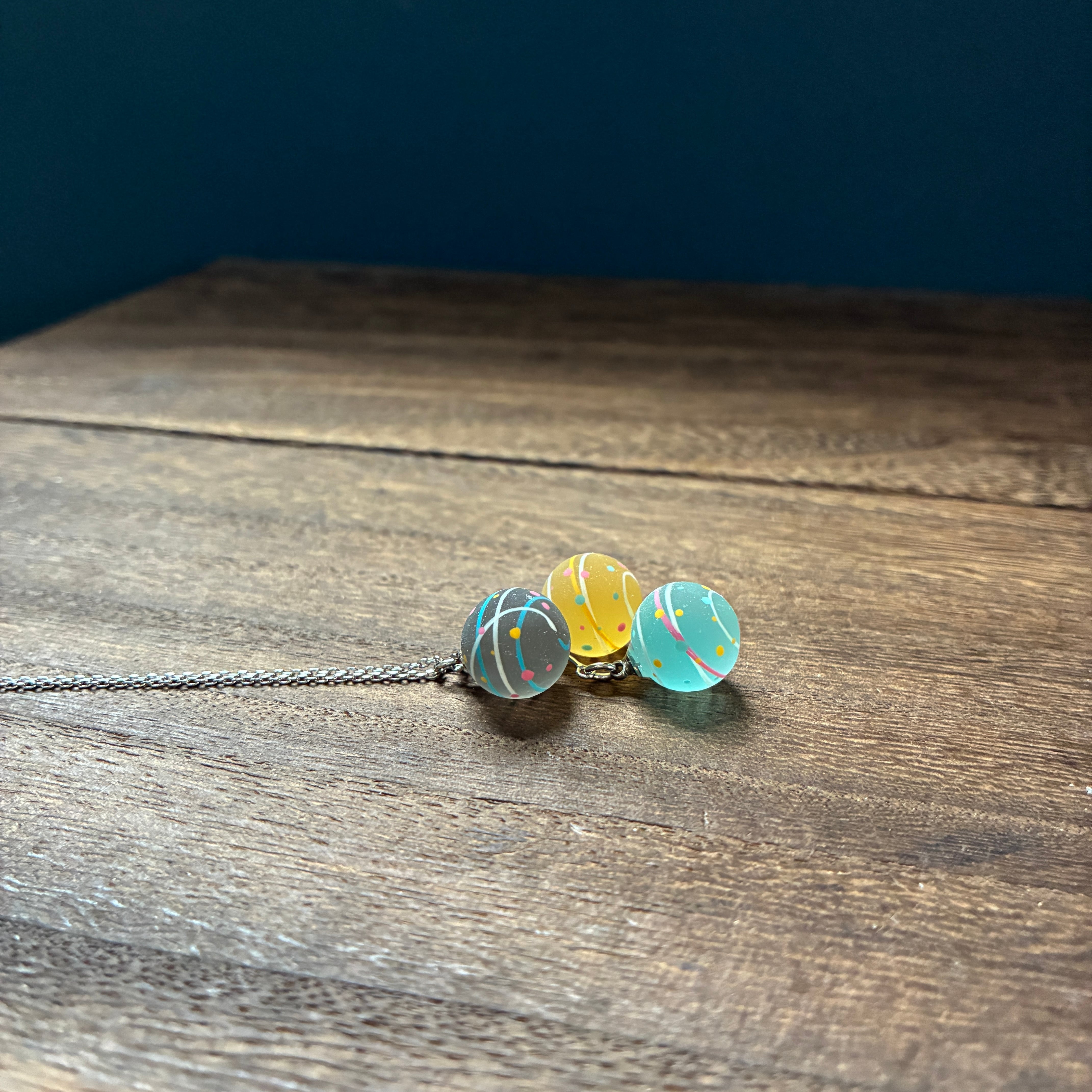 小さな水風船を3色組み合わせてネックレスに仕立てました。