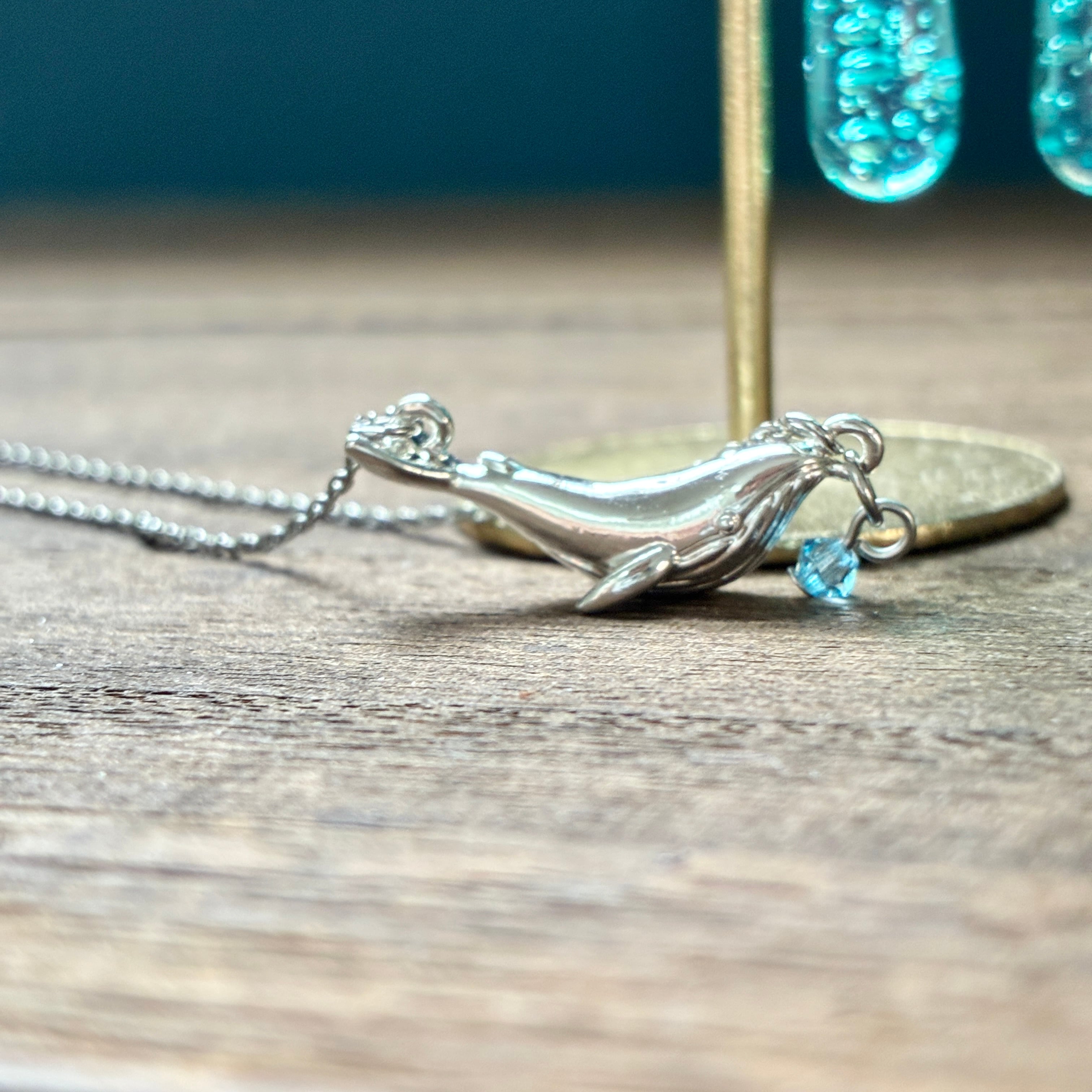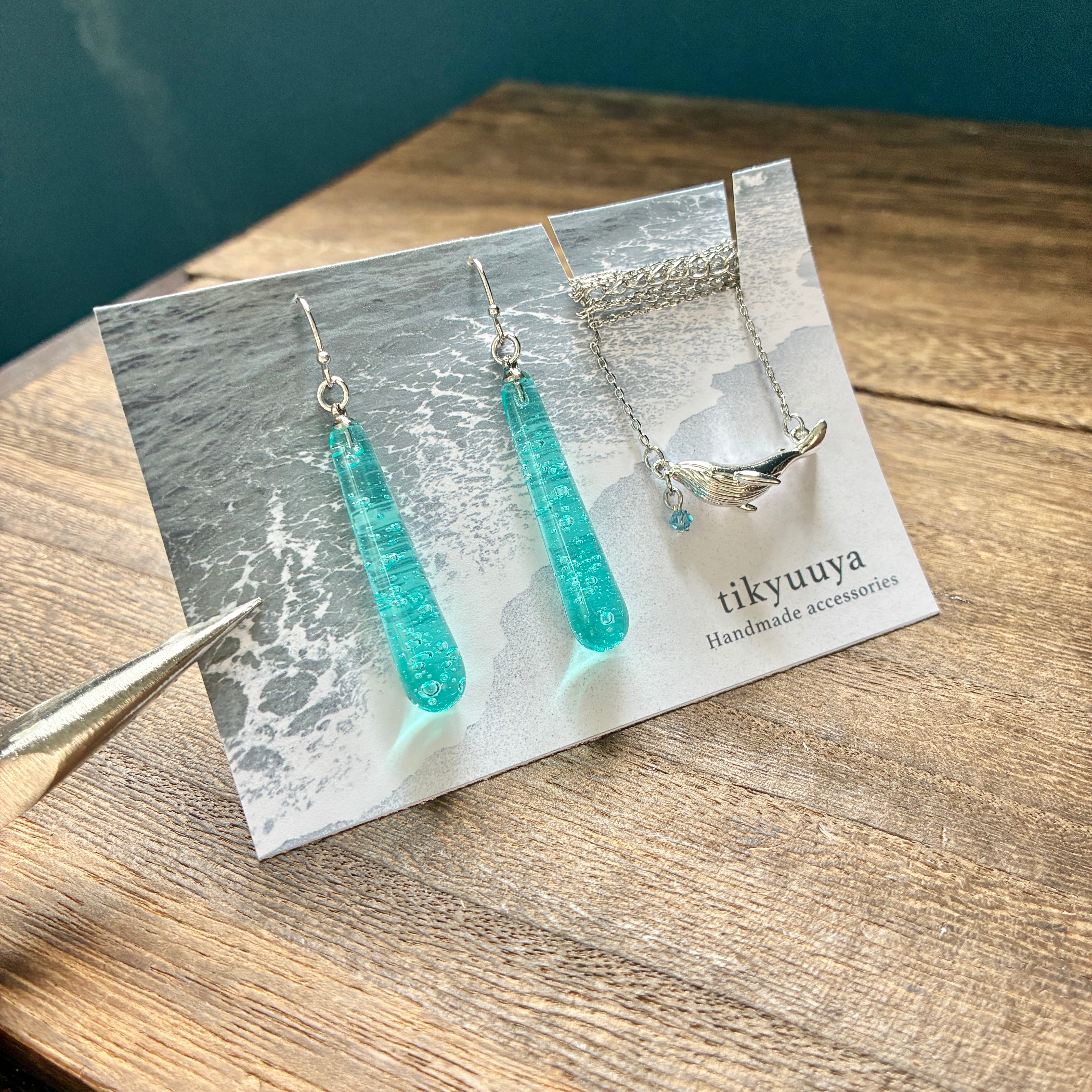 クジラチャームのネックレスとセットで爽やかな作品に仕上がりました。