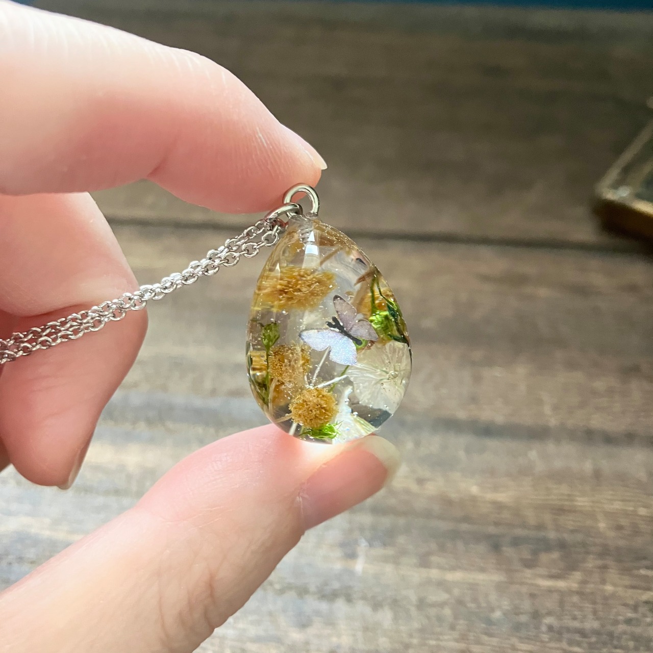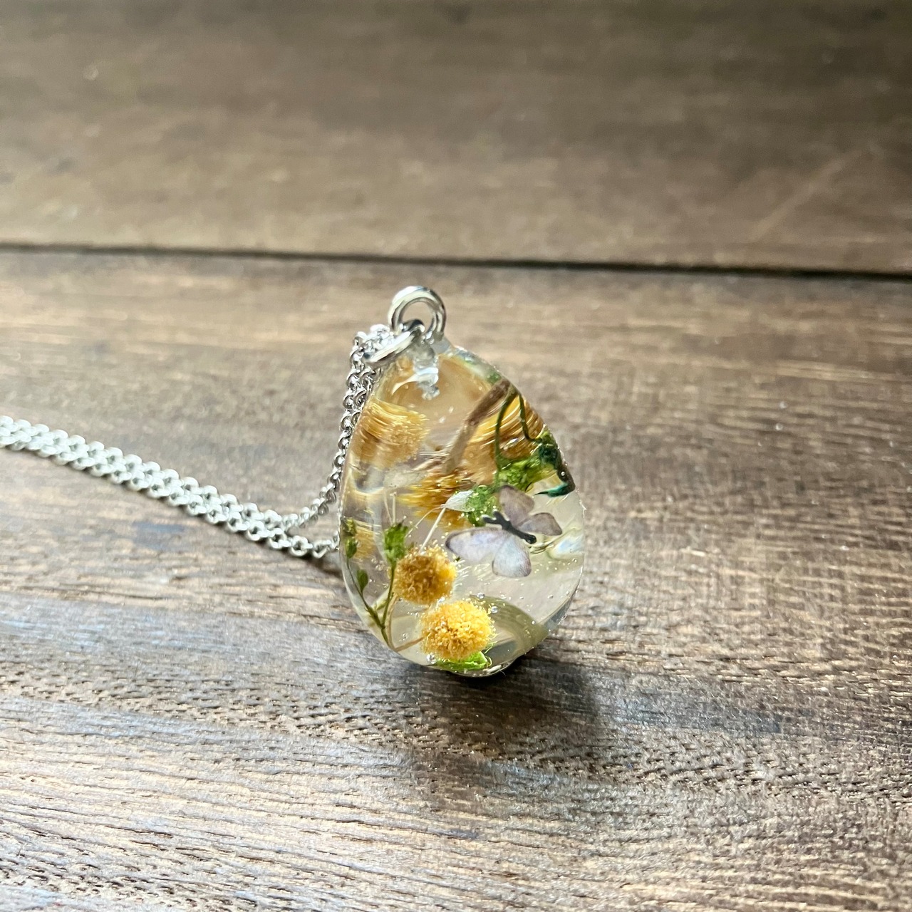 卵ペンダント25ミリ「ミモザと蝶」