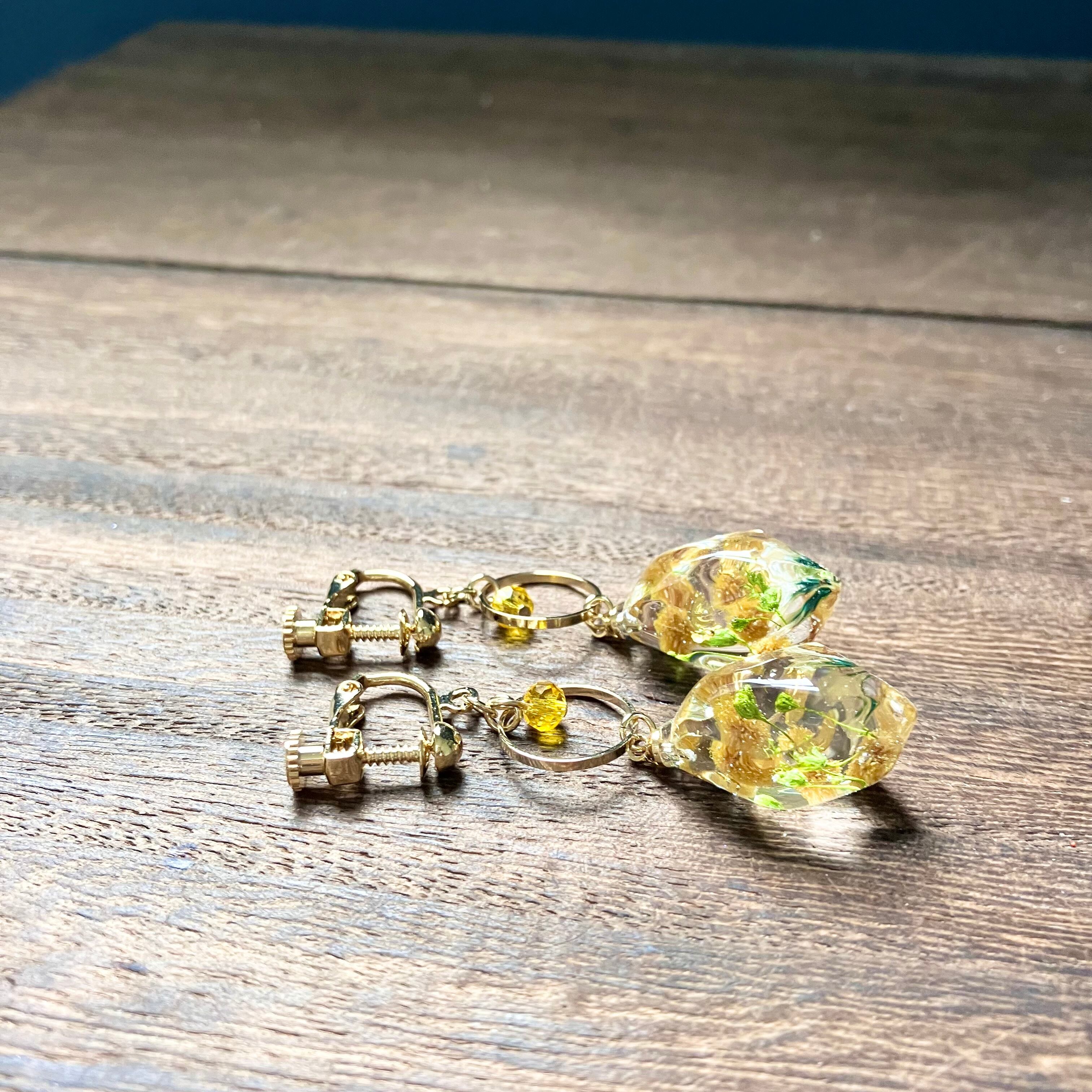 花鉱石イヤリング ミモザ