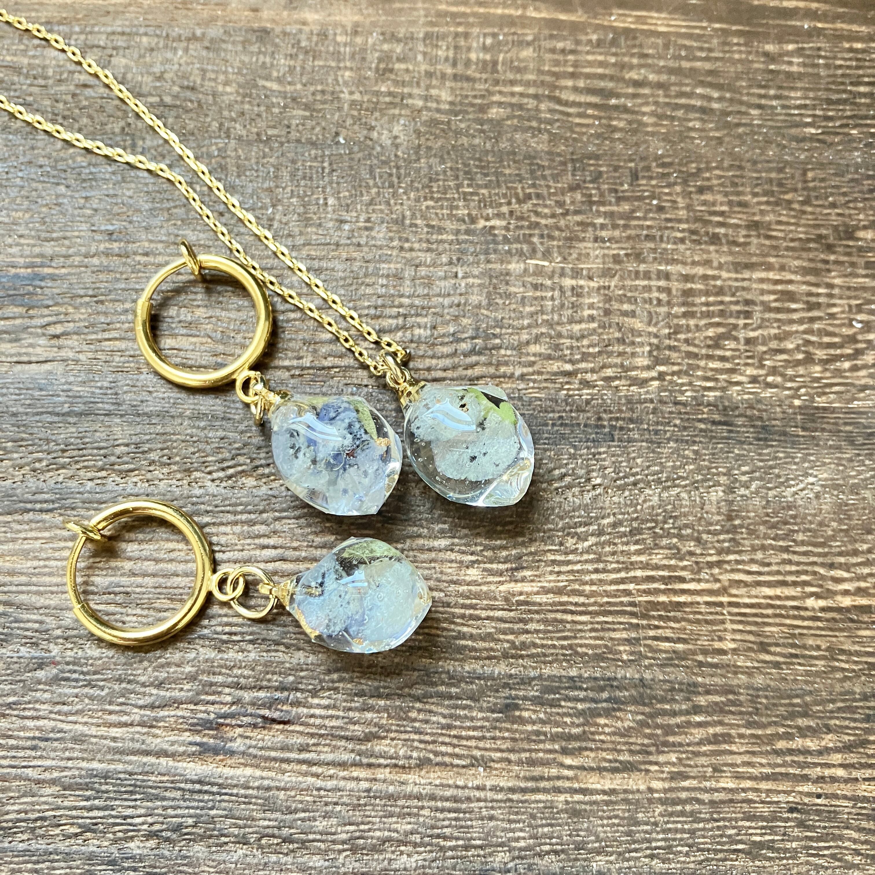 小さな鉱石イヤリング&ネックレス ネモフィラ