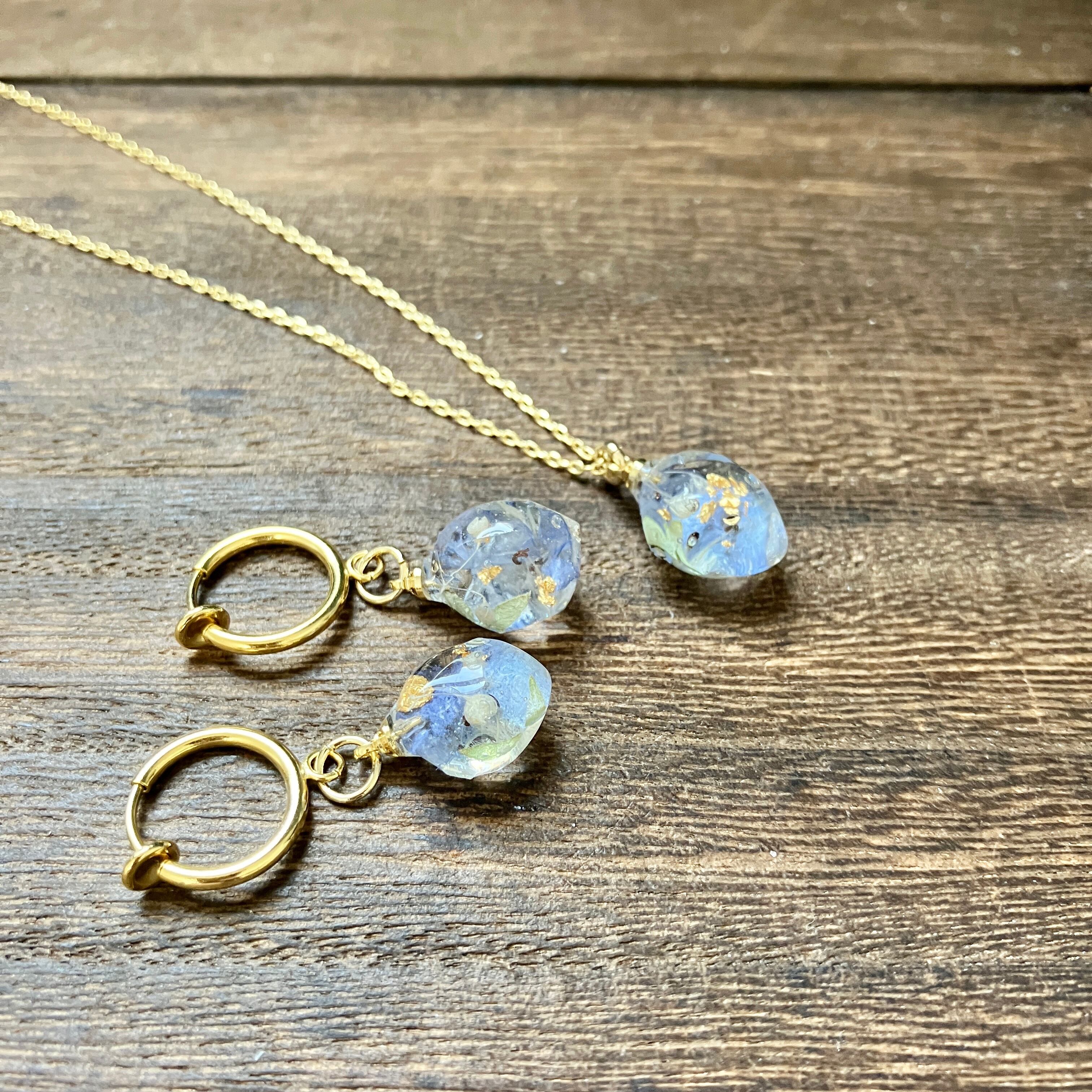小さな鉱石ピアス&ネックレス ネモフィラ