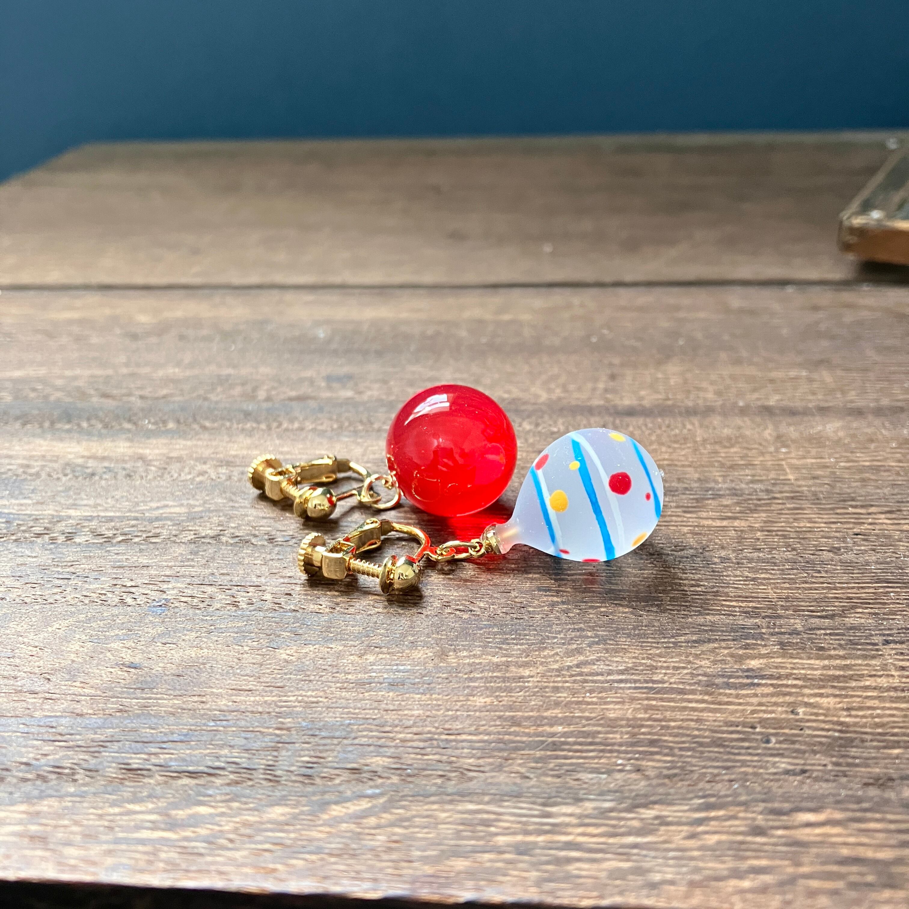 水風船とりんご飴のイヤリング(マット)