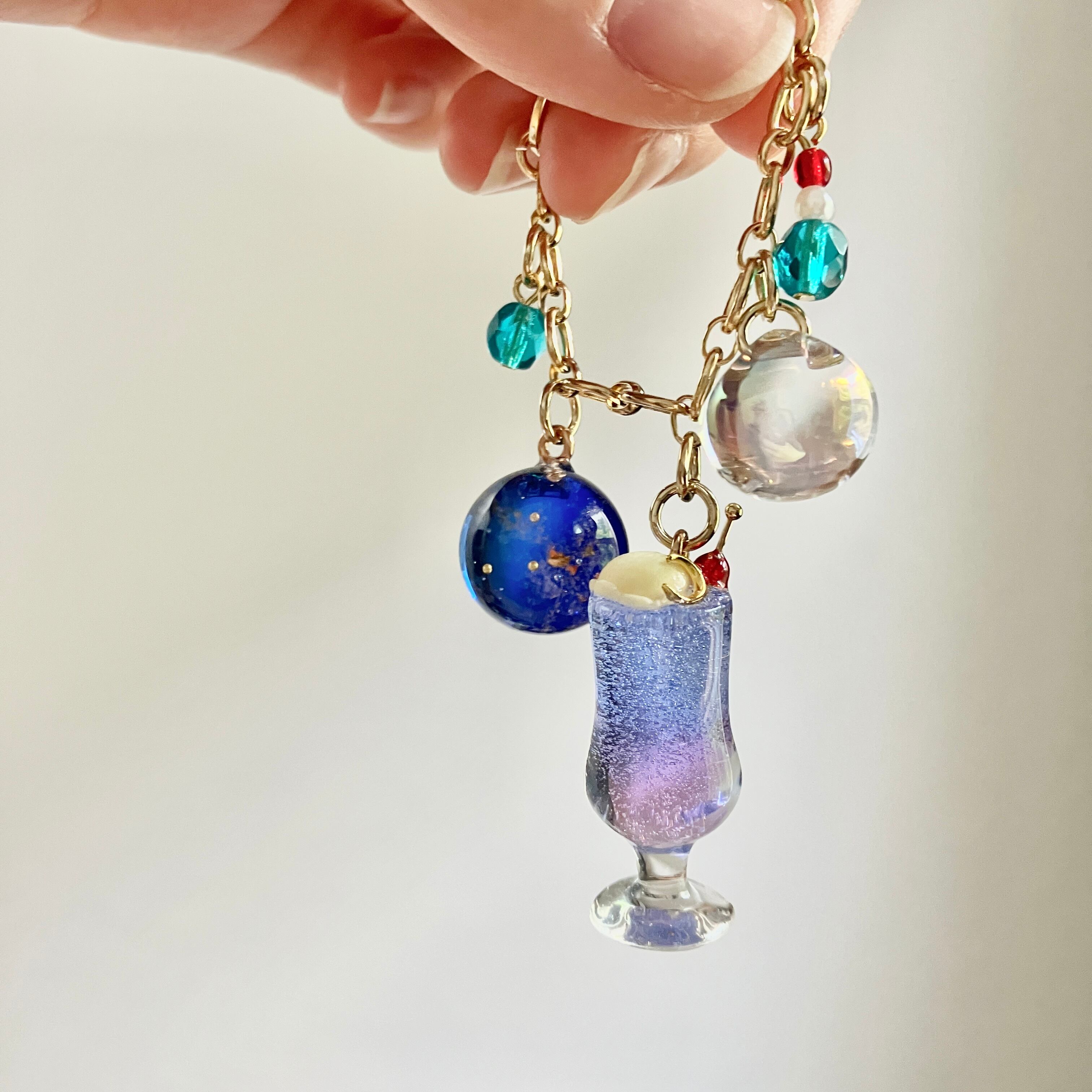 透明感のあるクリームソーダをバッグチャームに加工しました(^^)