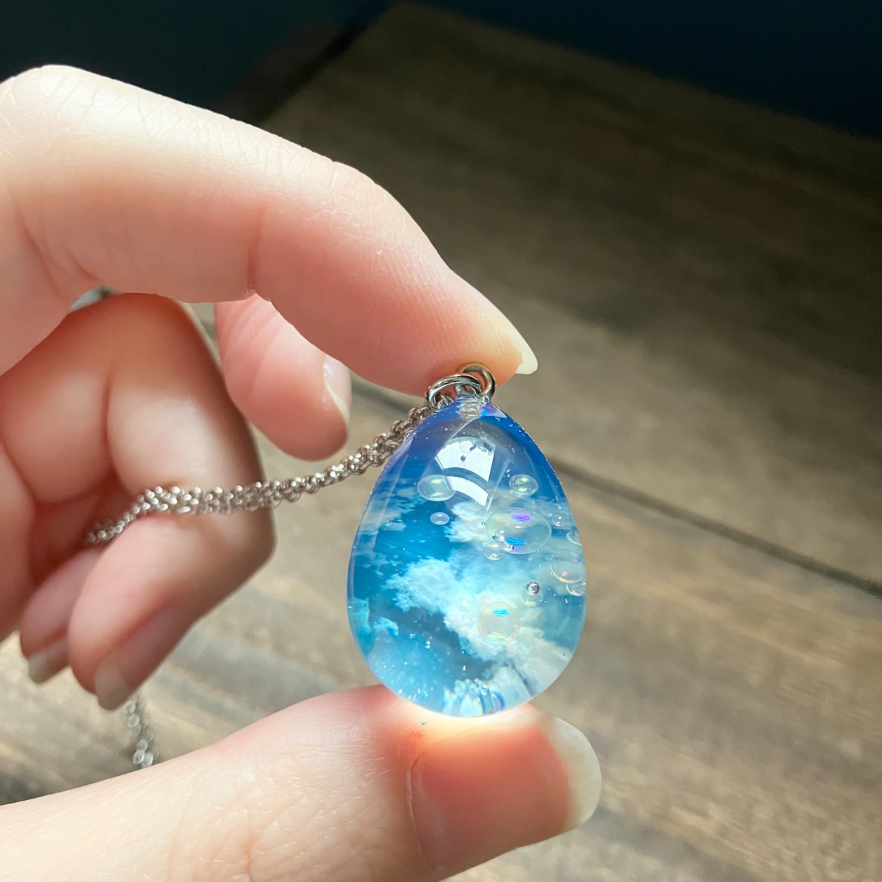 卵ペンダント25ミリ「一期一会の空とシャボン玉」