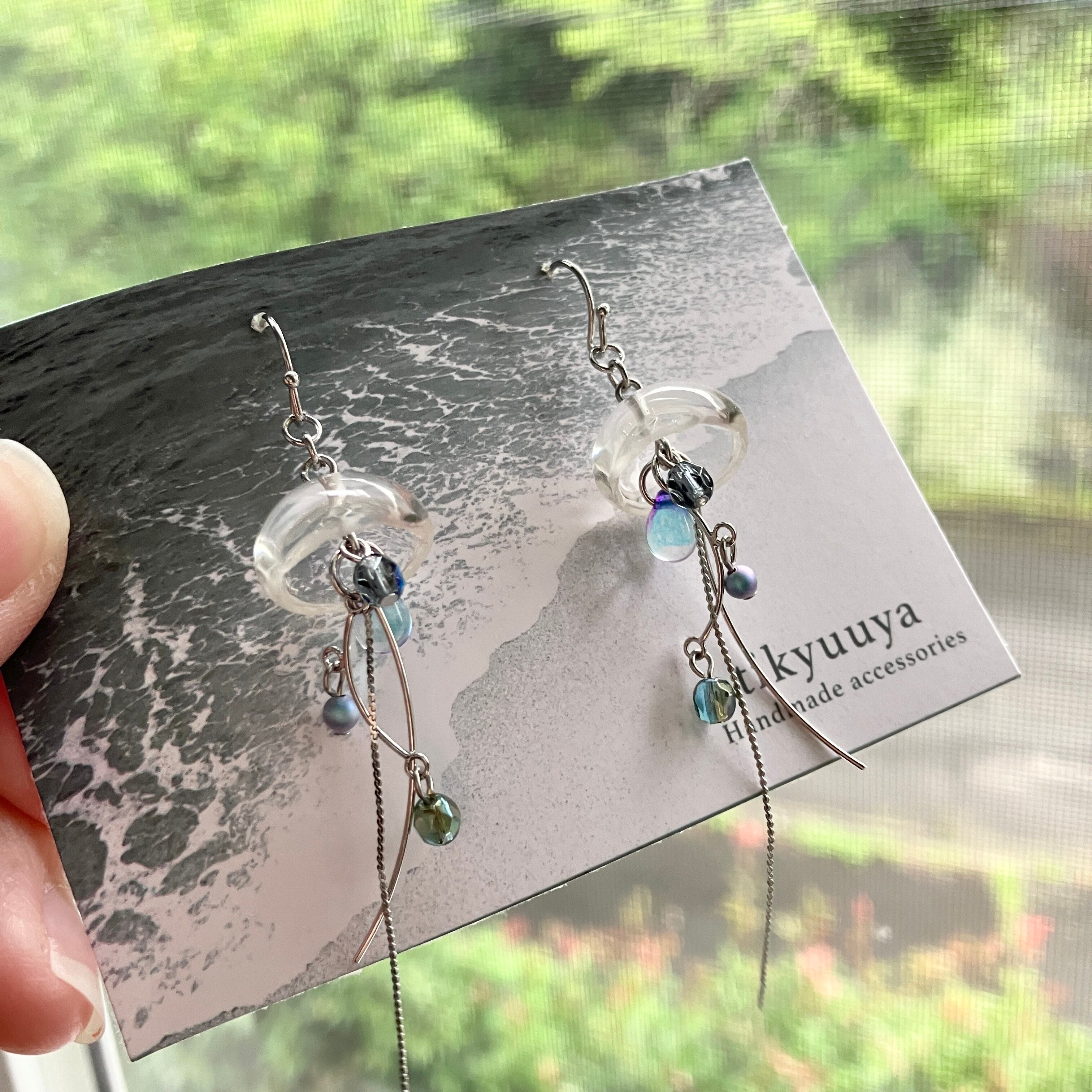 海月をモチーフにしたゆらゆら揺れる耳飾り。