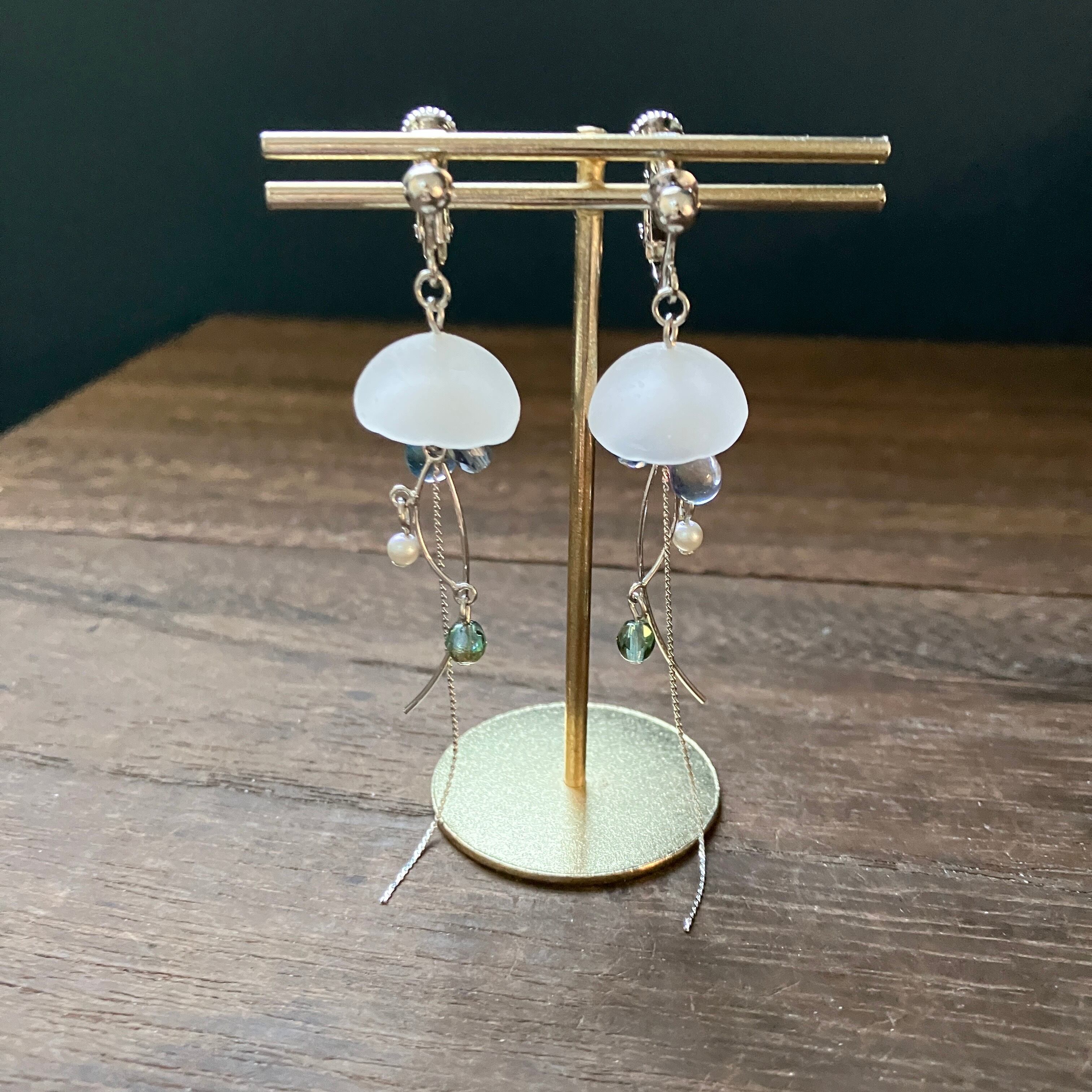 海月をモチーフにしたゆらゆら揺れる耳飾り。