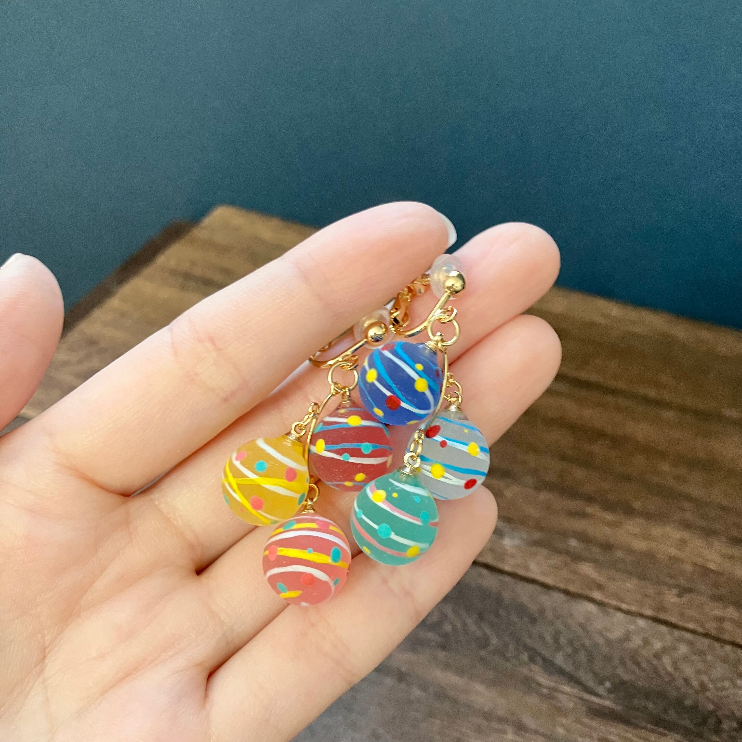 12ミリの小さな球体にヨーヨー模様を手描きしました(^^)