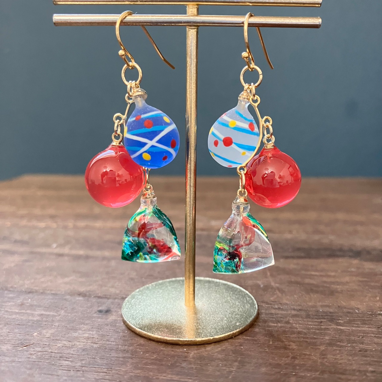 りんご飴、金魚すくい、水風船が一気に楽しめるよくばりな耳飾りが出来ました(^^)