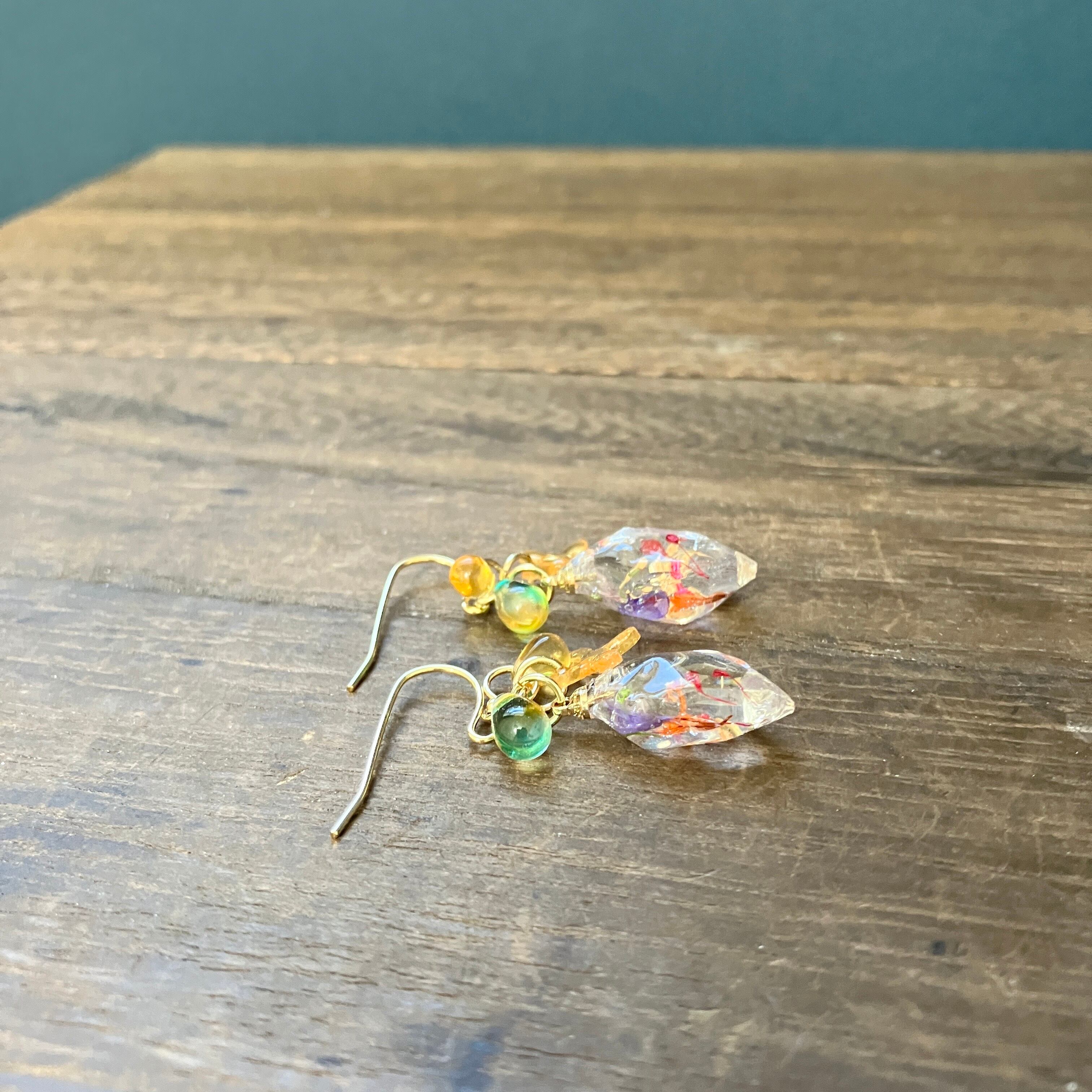 秋色の花を閉じ込めた透明感のある鉱石です。