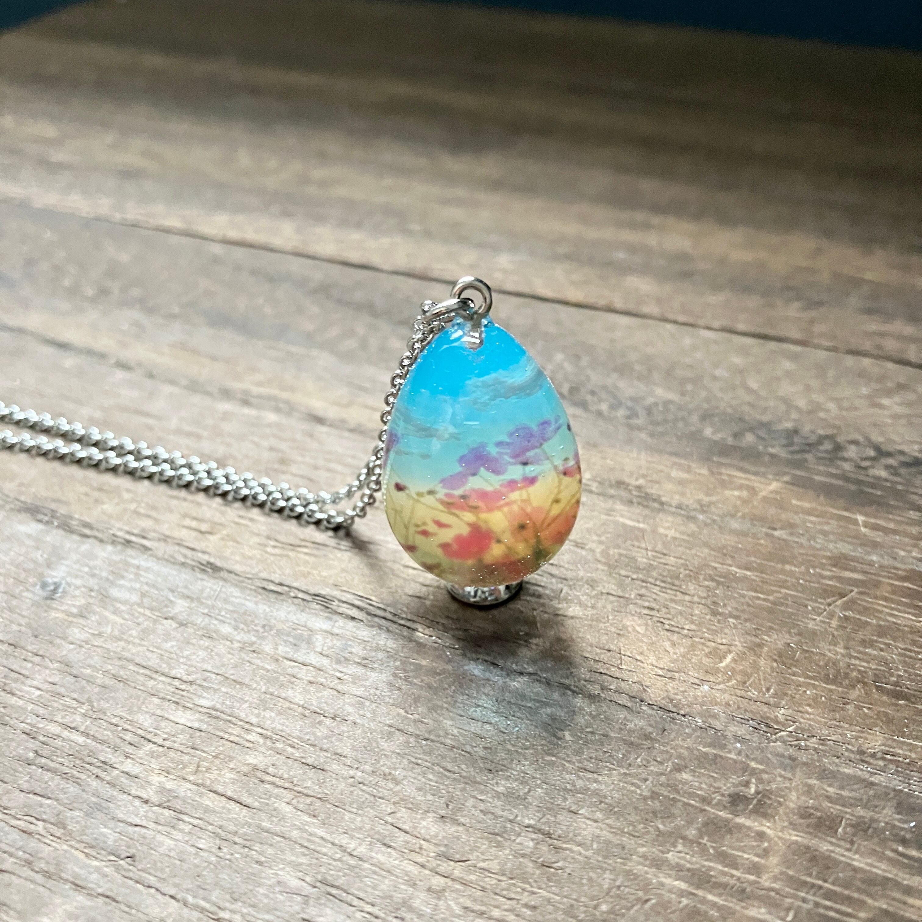 卵ペンダント25ミリ「一期一会の空とコスモス」