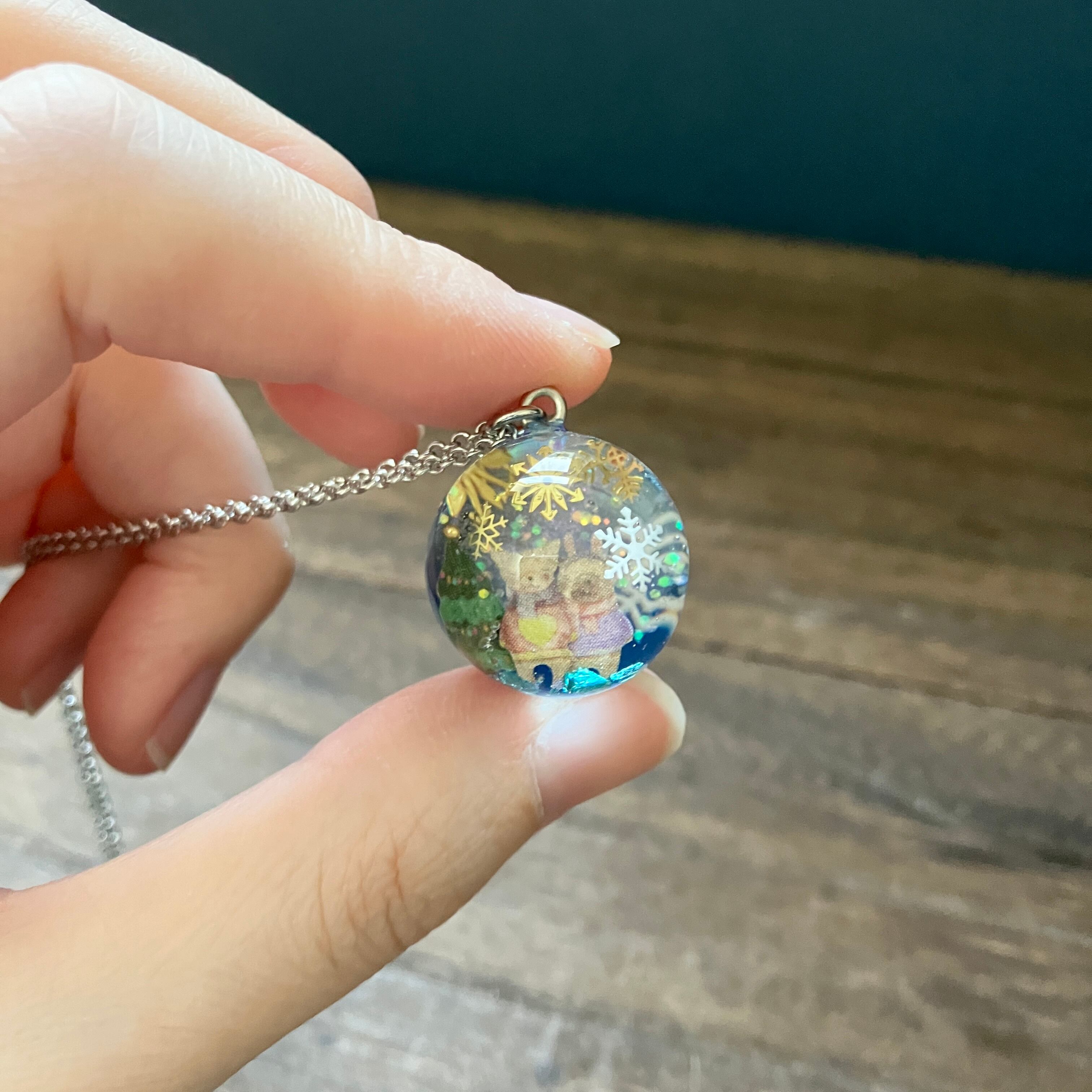 宙ペンダント「スノードーム(森の動物たち)」