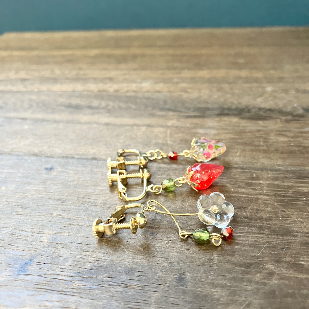 まっ赤な苺とお花入りの苺、そして苺の花をイメージしたモチーフの3個セットです!