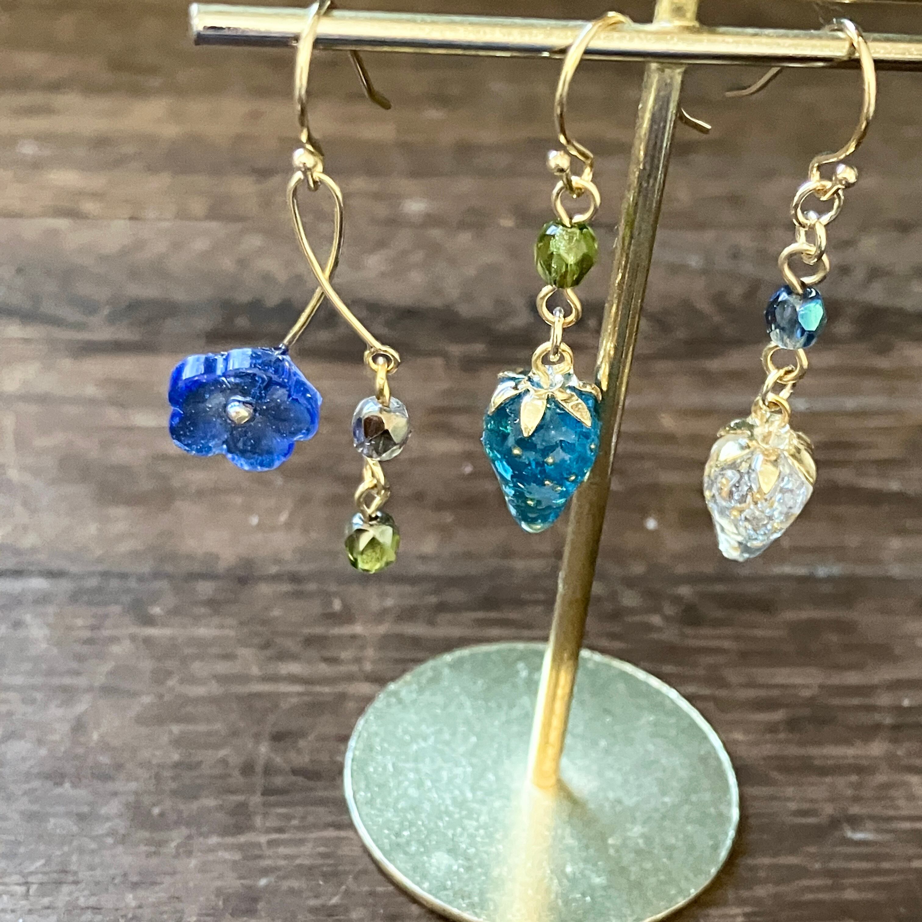 小さな苺ピアス 幸せブルー