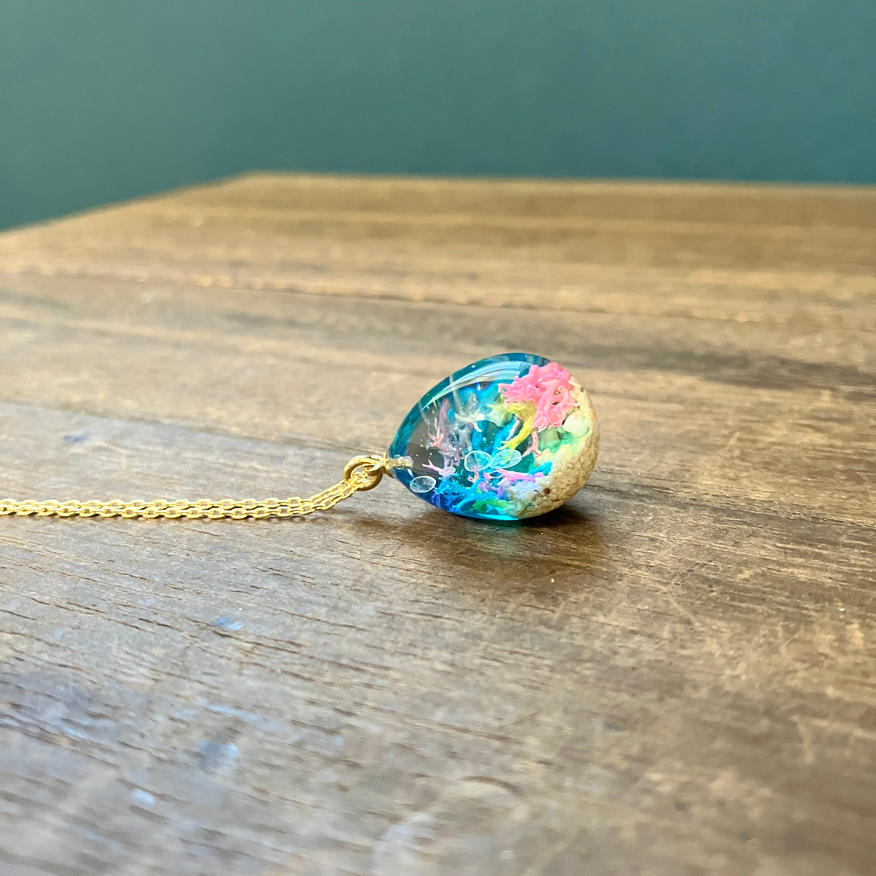 小ぶりな卵ネックレス20ミリ「サンゴ礁」
