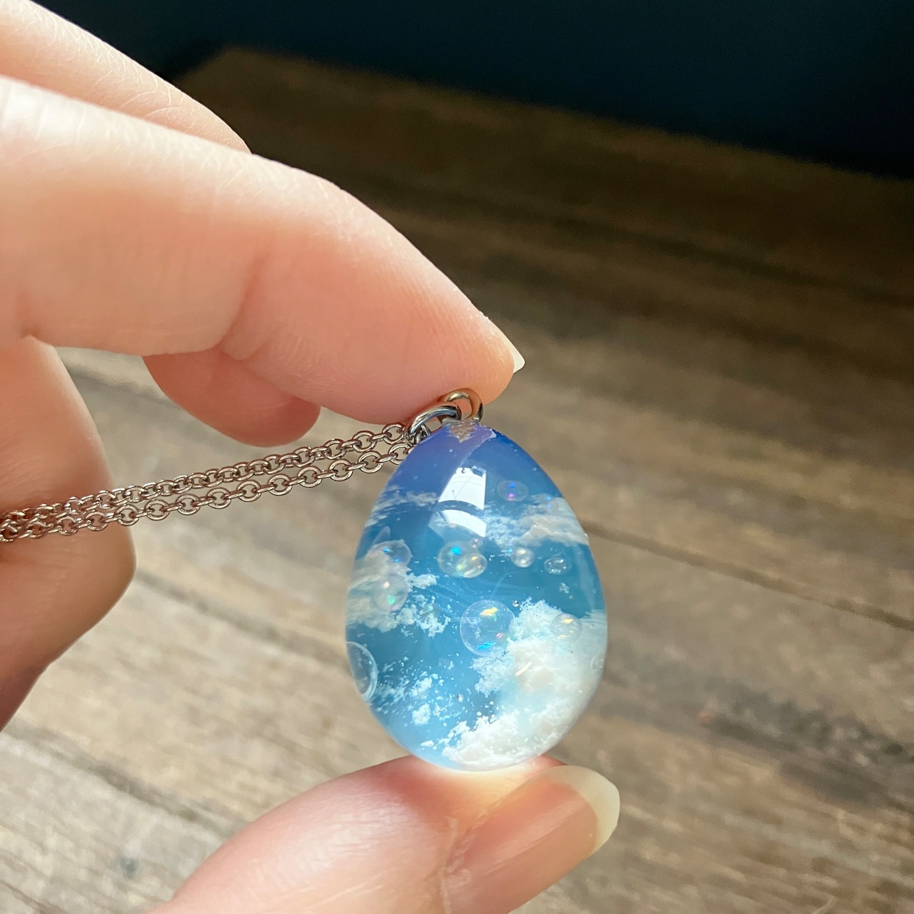 卵ペンダント25ミリ「一期一会の空とシャボン玉」