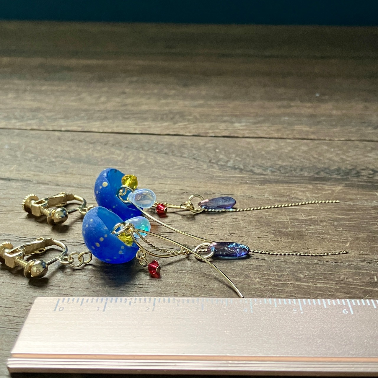 海月をモチーフにしたゆらゆら揺れる耳飾り。