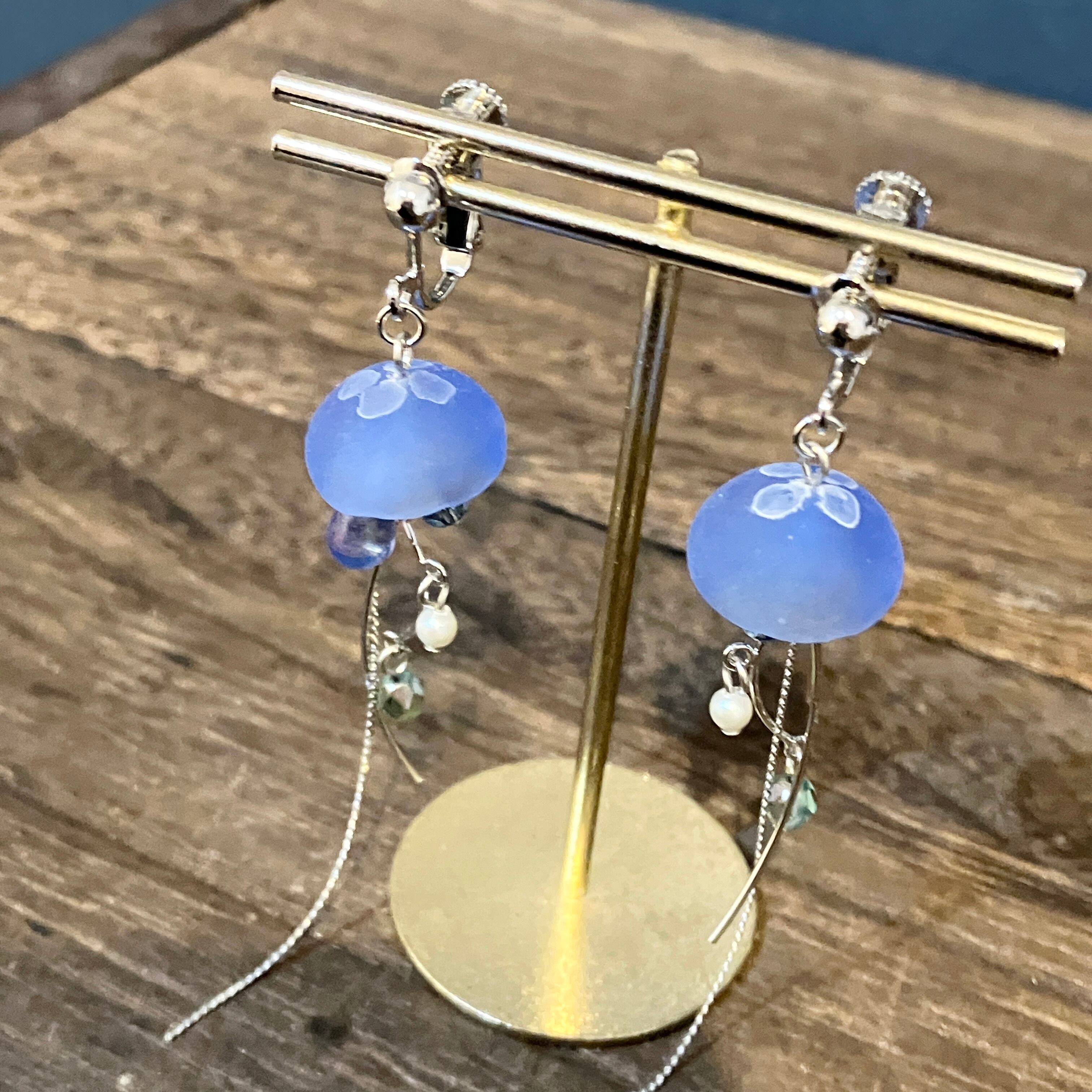 海月をモチーフにしたゆらゆら揺れる耳飾り。