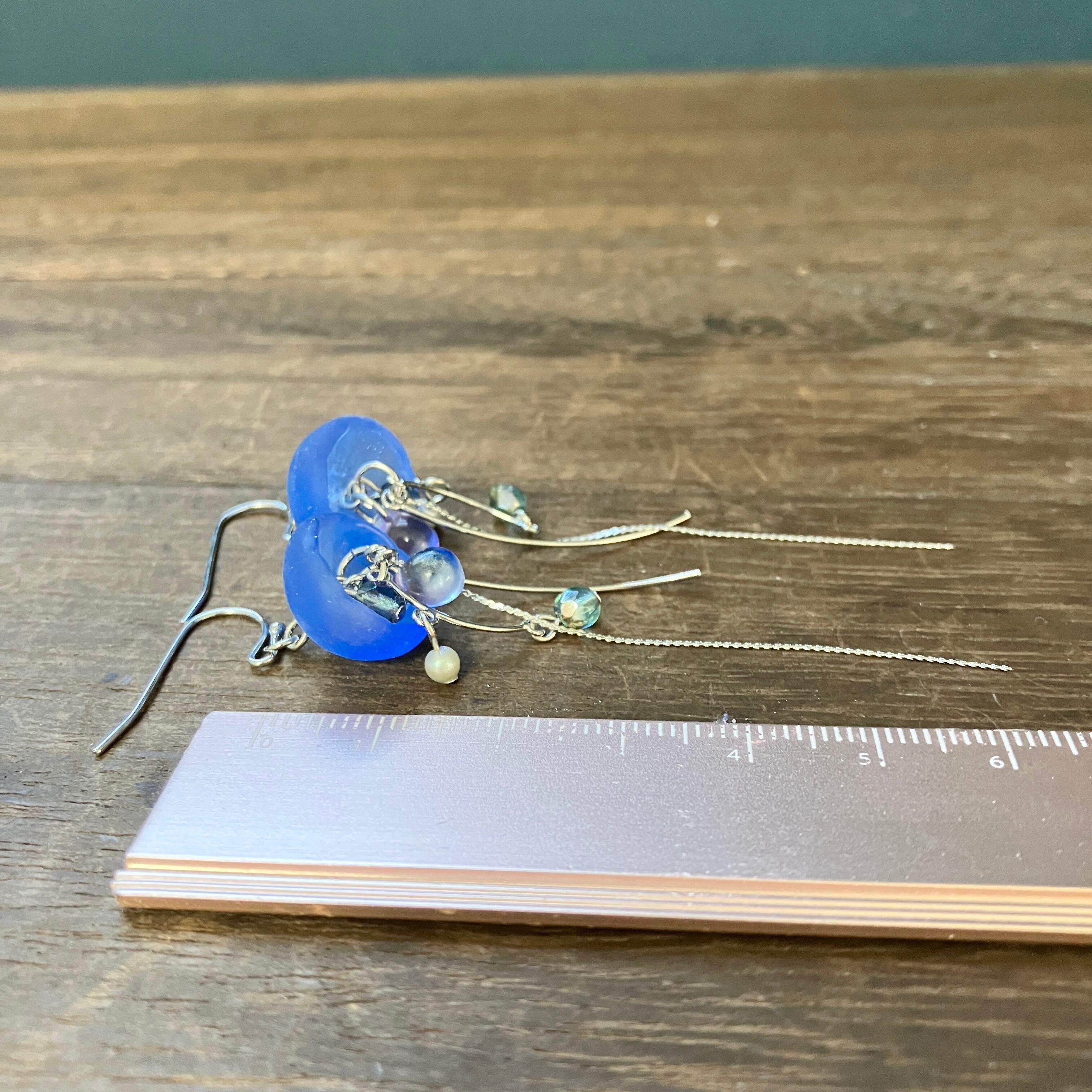 ブルー系統のビーズやパールビーズがキラキラ揺れ、耳元を華やかに彩ってくれます。